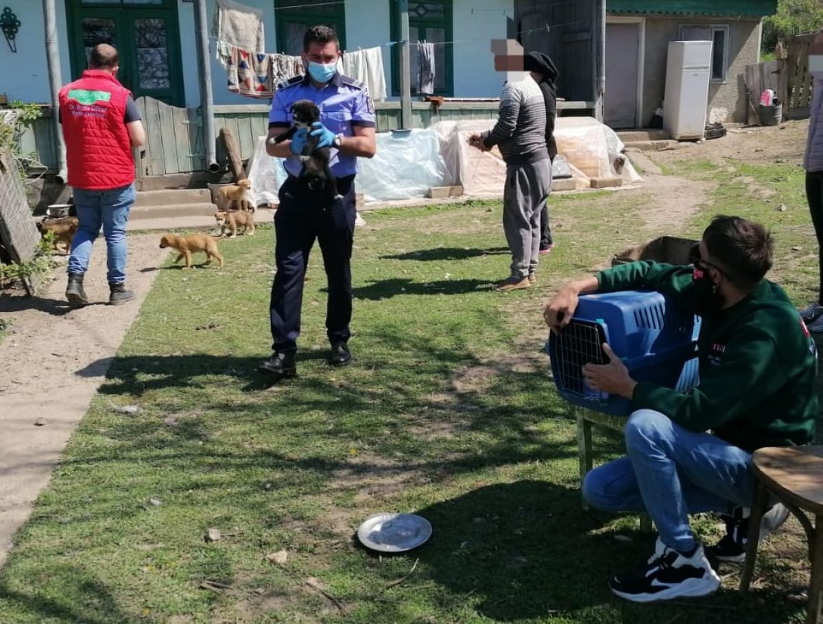 Polițiștii care s-au deplasat la fața locului au identificat în curtea gospodăriei indicate două cățelușe de talie mică, care aveau câte patru pui fiecare, cu vârsta de aproximativ două luni.