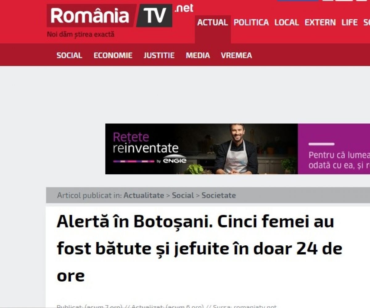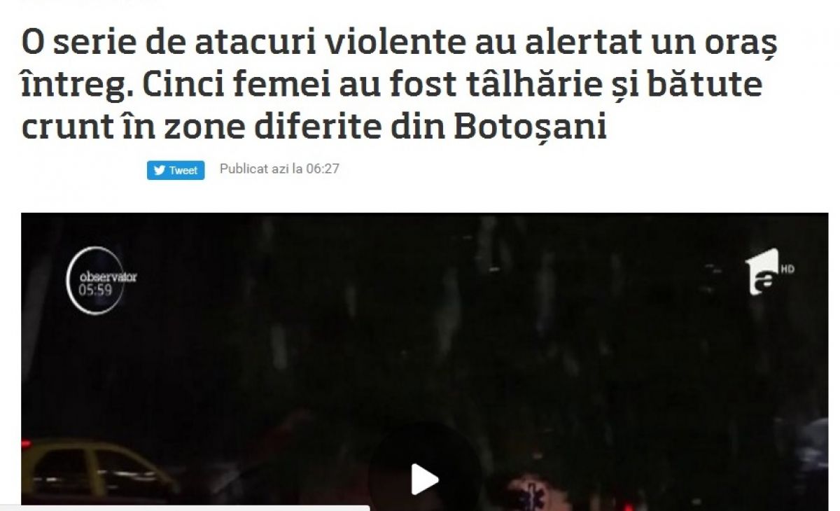După ce un număr de cinci femei din Botoșani au fost tâlhărite cu o cruzime de nedescris în doar două zile, la lăsarea serii, pe străzile din municipiu, subiectul privind teroarea din nordul țării a ajuns în presa națională.