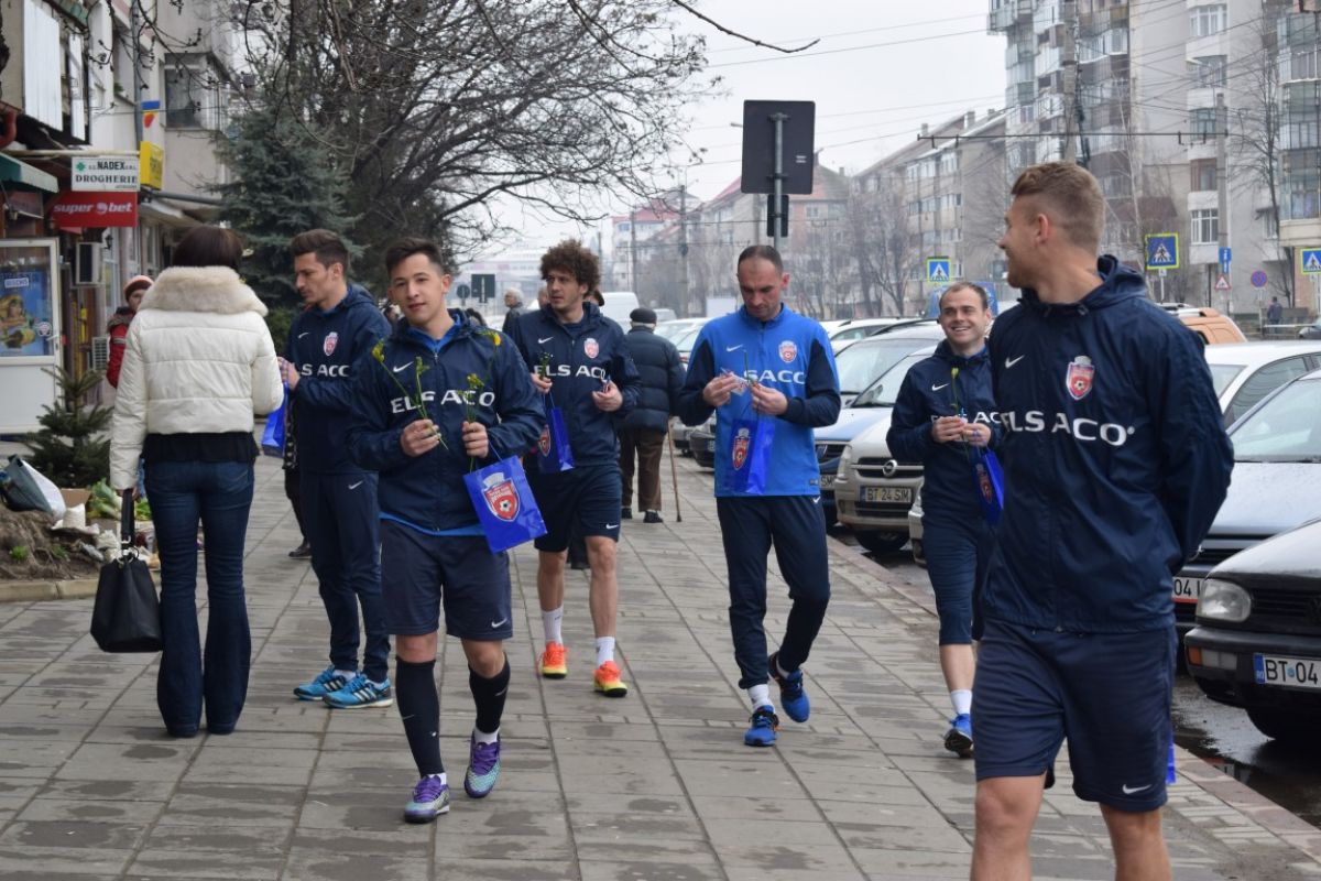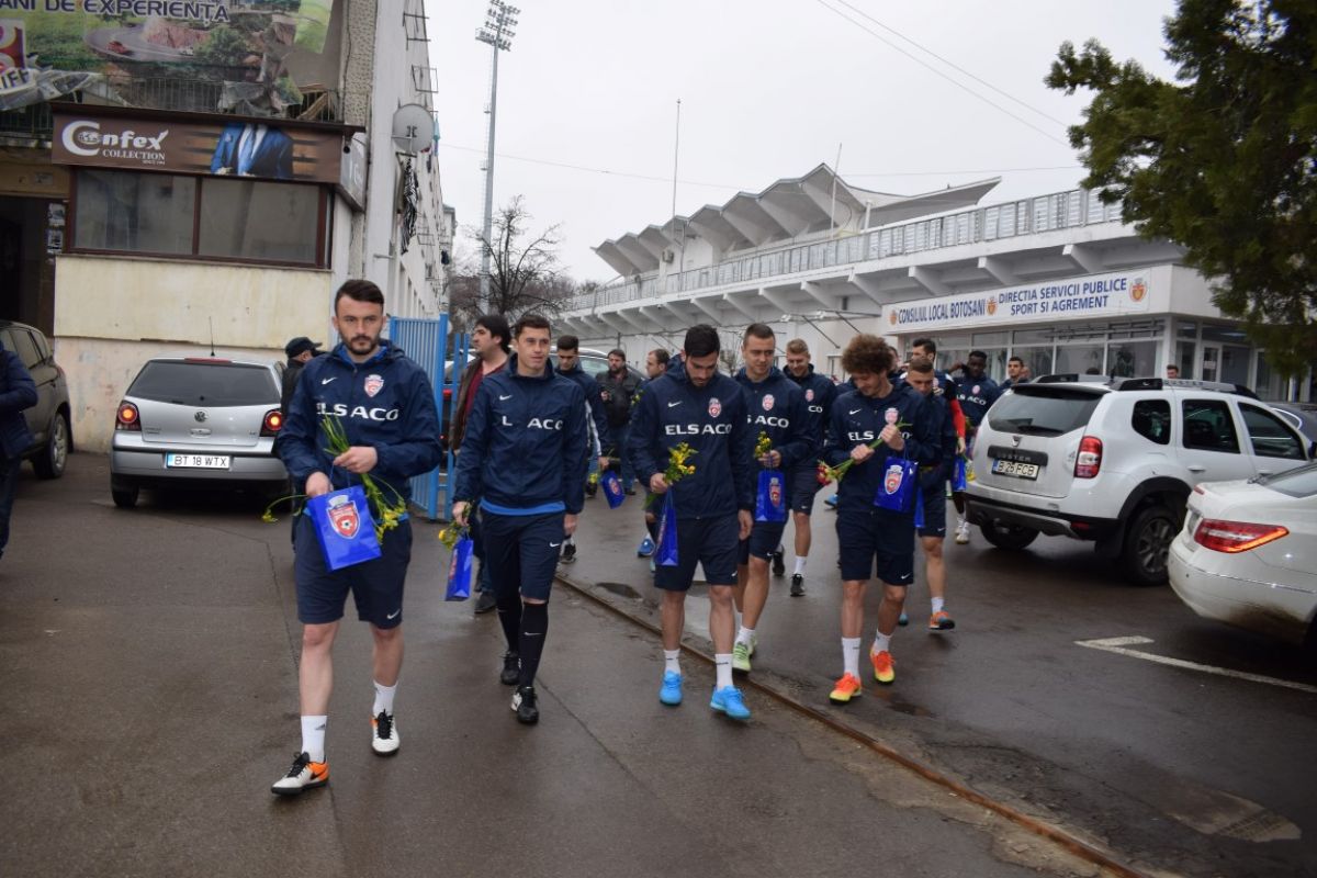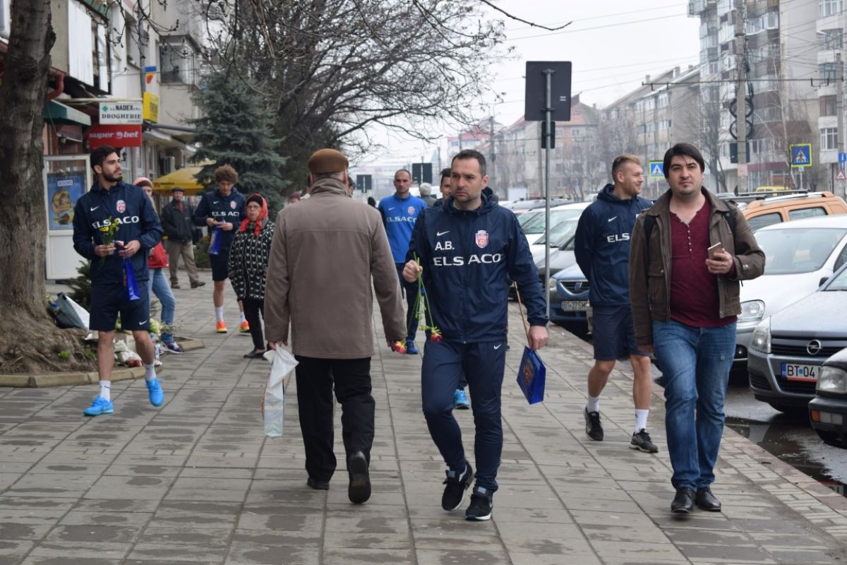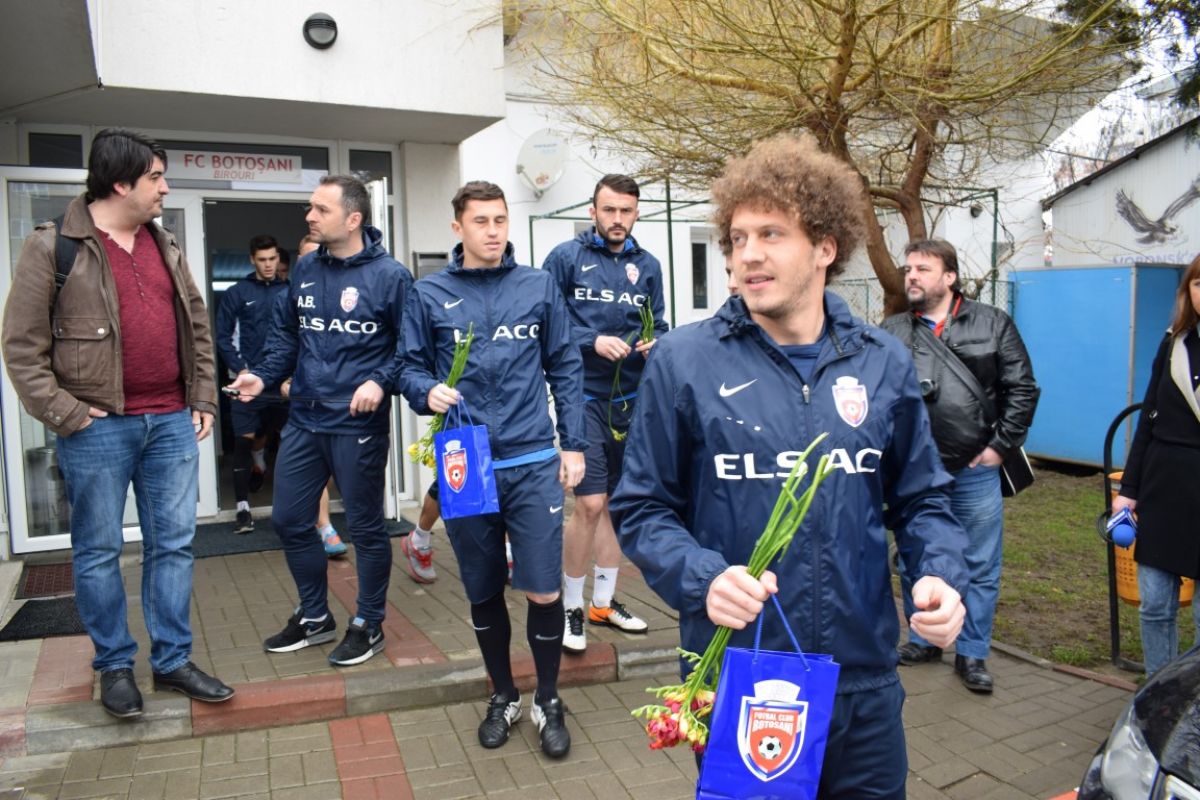 Jucătorii coordonați de doar unul dintre antrenori, respectiv Alin Bordeanu, au ieșit pe stradă pentru a le oferi flori și mărțișoare cu sigla FC Botoșani, doamnelor și domnișoarelor din municipiu.