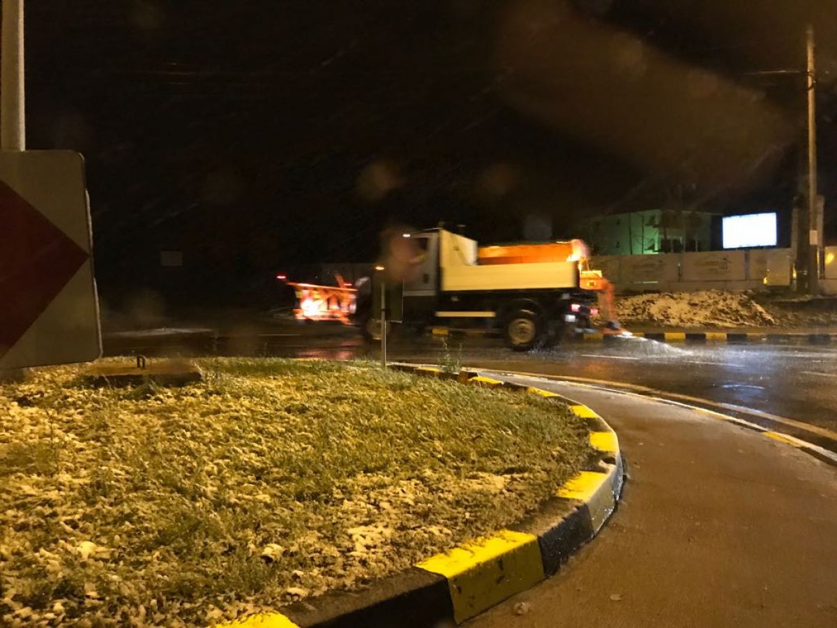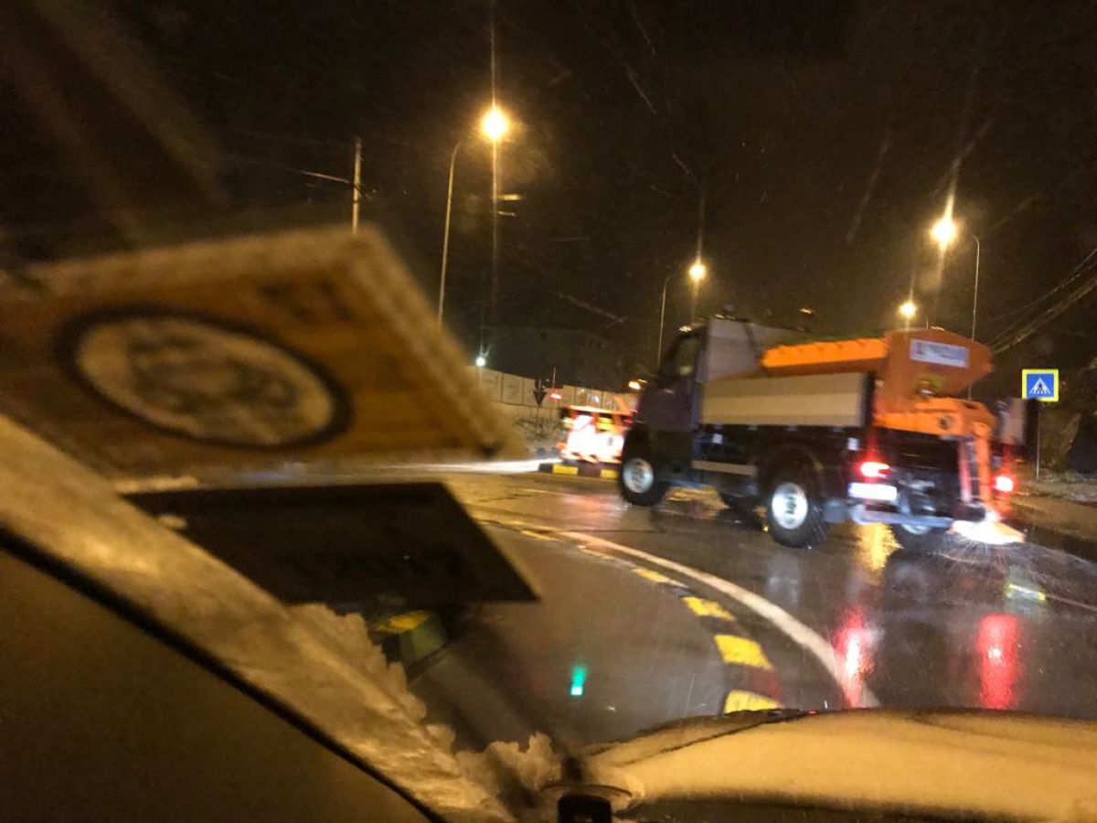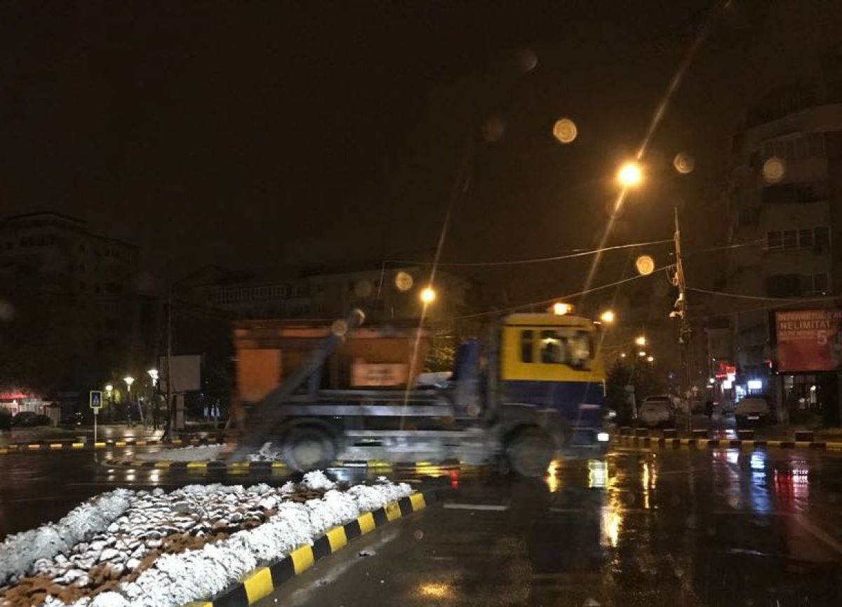 Cezar Nicuţă, care răspunde direct de salubrizare, colectarea gunoiului şi, mai ales, de activitatea de iarnă, a ieşit la treabă dis-de-dmineaţă, alături de colegi. În jurul orei 4:00, pentru a preveni producerea de polei, fiindcă de deszăpezire nu putea fi vorba, au fost scoase din garajele SC Urban Serv SA trei maşini mari pentru carosabil şi altele mai mici pentru trotuare care au împrăştiat material antiderapant.