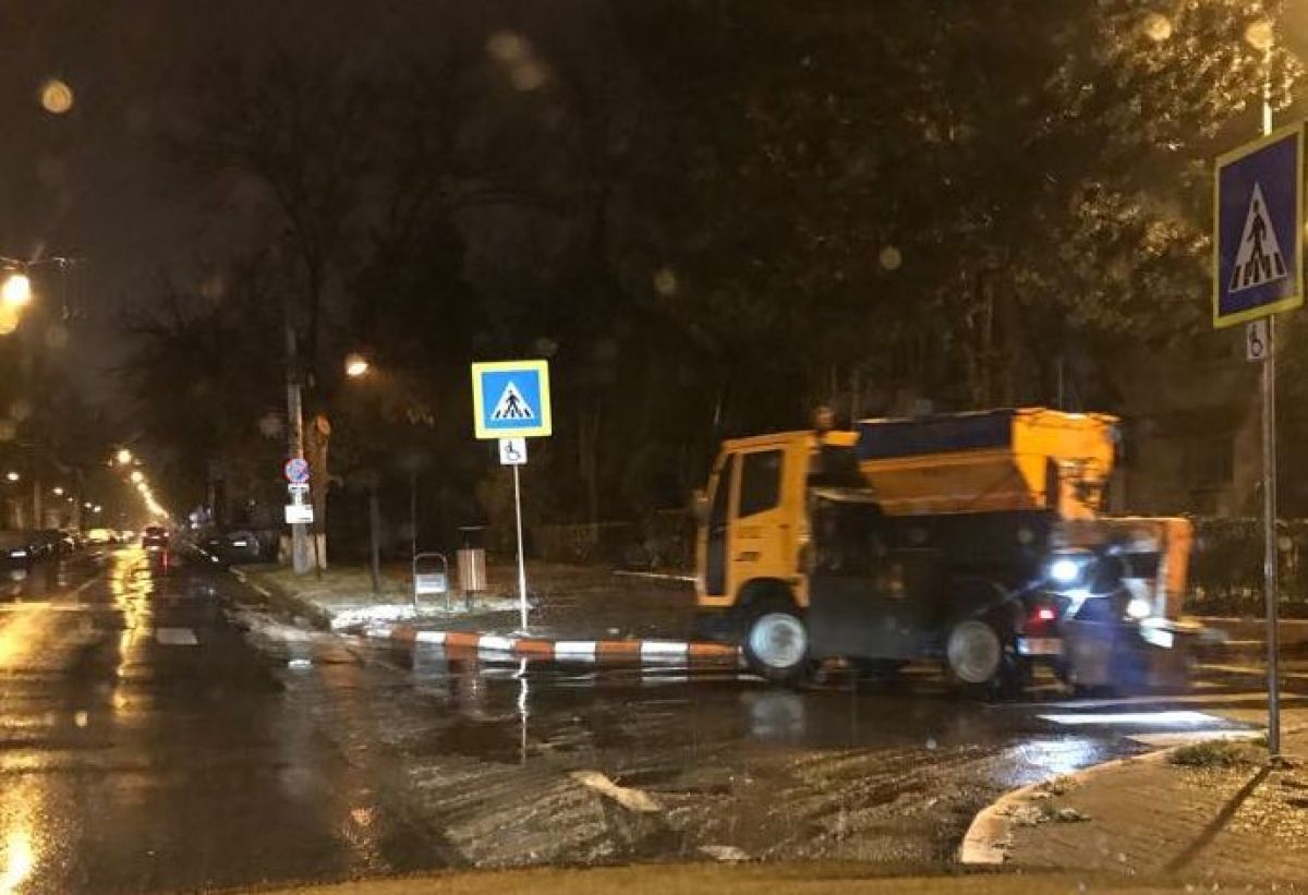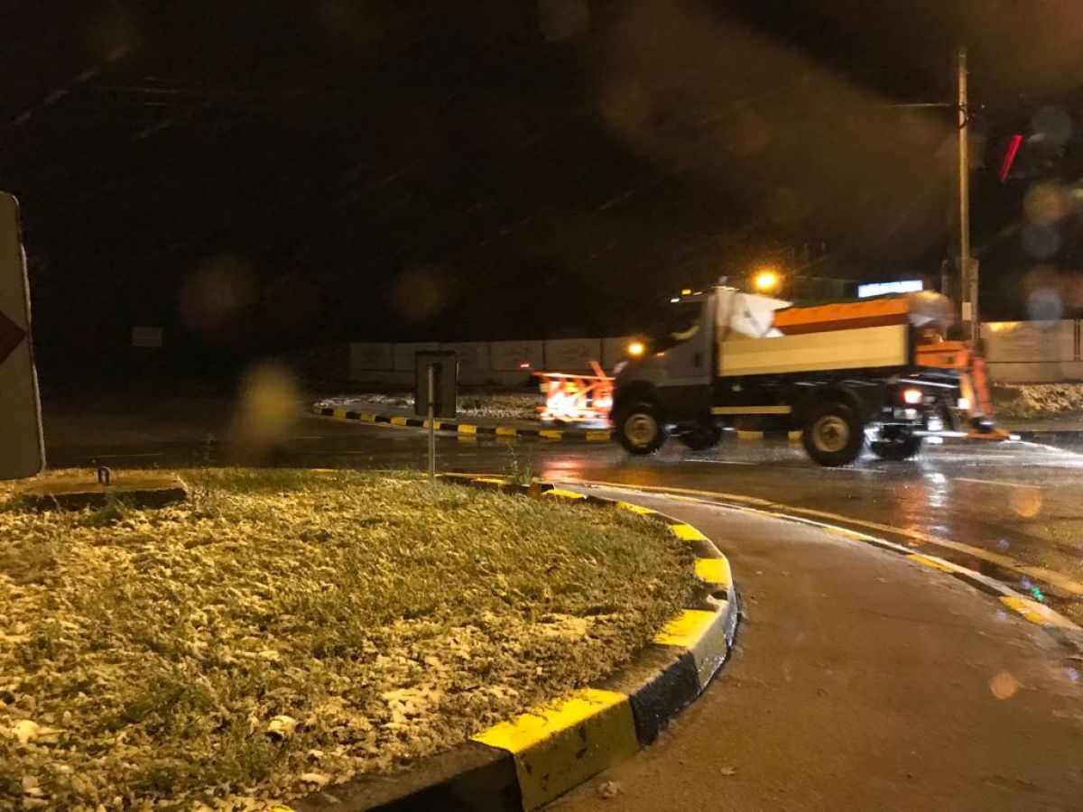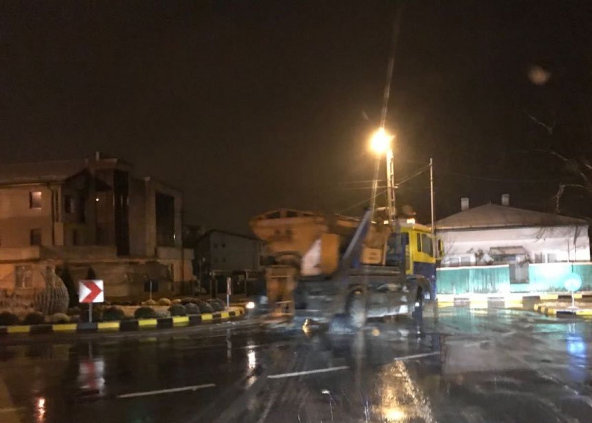 Cezar Nicuţă, care răspunde direct de salubrizare, colectarea gunoiului şi, mai ales, de activitatea de iarnă, a ieşit la treabă dis-de-dmineaţă, alături de colegi. În jurul orei 4:00, pentru a preveni producerea de polei, fiindcă de deszăpezire nu putea fi vorba, au fost scoase din garajele SC Urban Serv SA trei maşini mari pentru carosabil şi altele mai mici pentru trotuare care au împrăştiat material antiderapant.