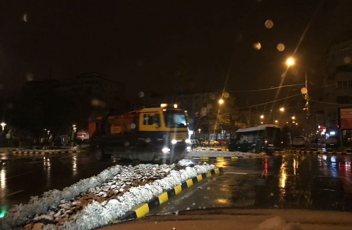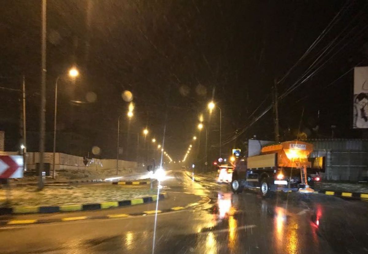 de sare şi clorură de calciu s-a consumat în prima noapte de ninsoare.