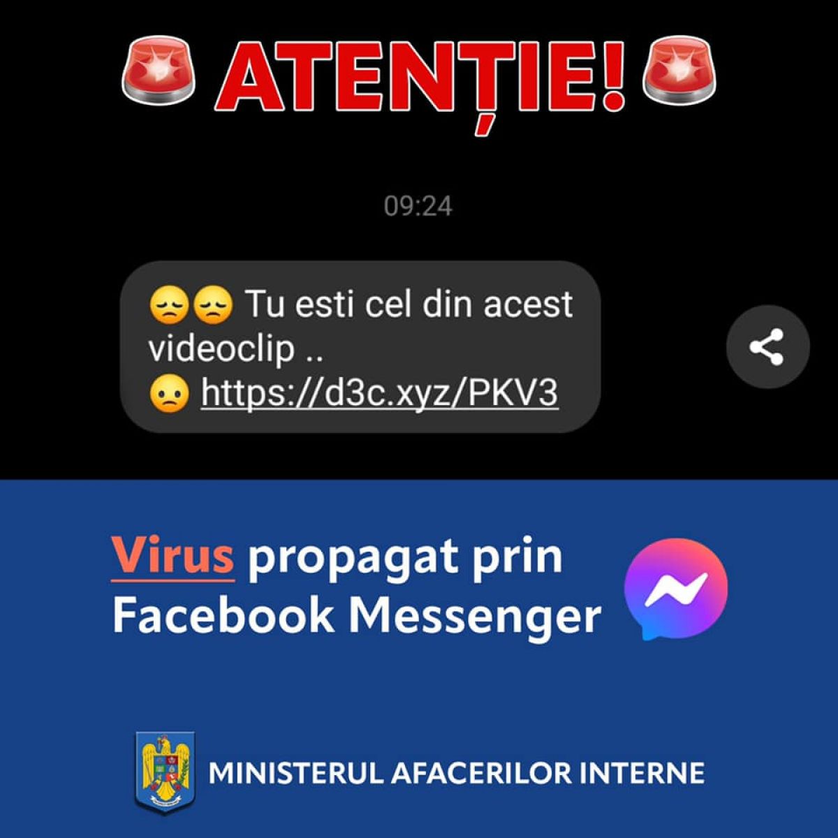 Ministerul Afacerilor Interne atrage atenția către utilizatorii Facebook să nu acceseze mesajele care încep în felul următor: