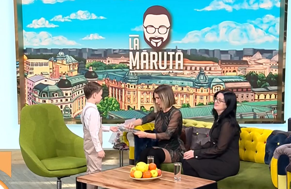 Rareș Prisacariu, copilul minune din Botoșani care a făcut sala să plângă cu un discurs patriotic la ”Românii au talent”, împreună cu mama lui au fost invitați în emisiunea ”La Măruță”, moderată de actrița Adela Popescu.
