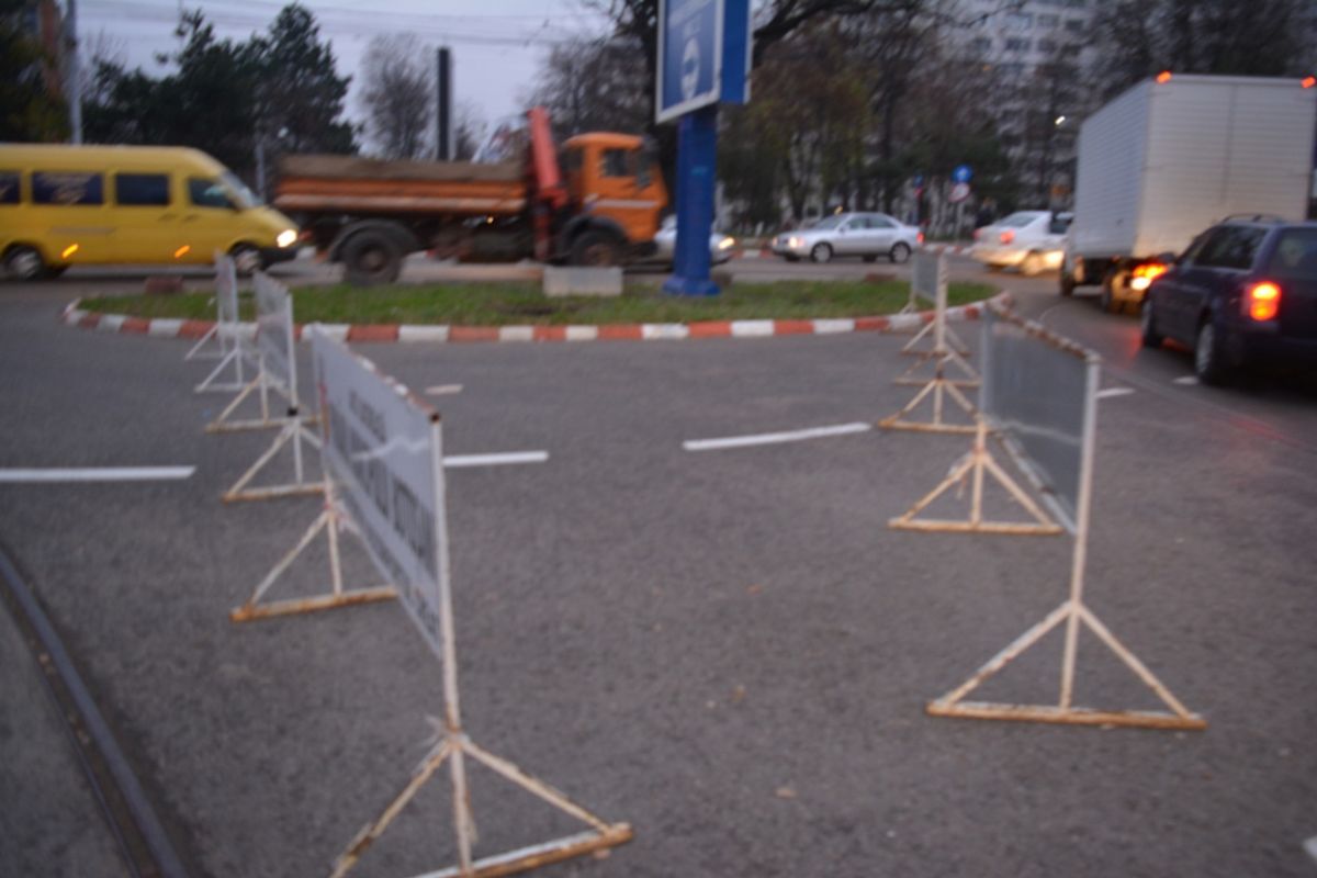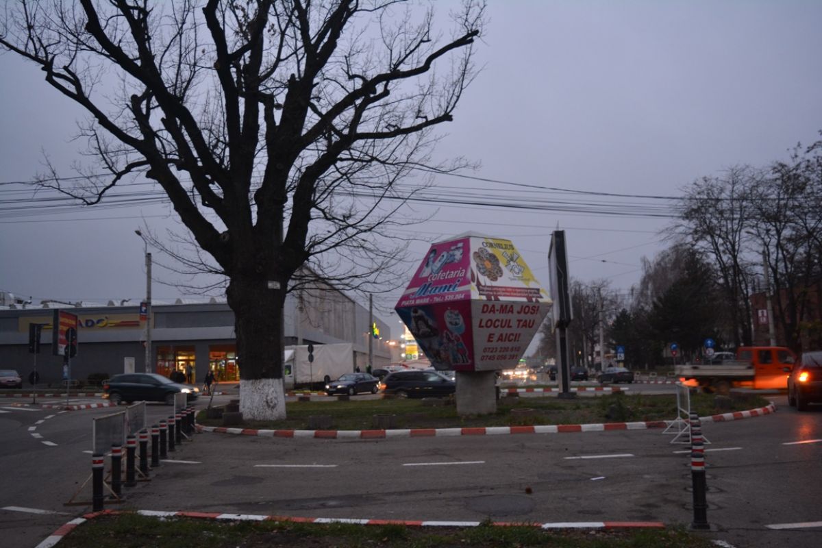 În practică s-au montat pur și simplu niște piloni pe carosabil și s-au așezat și panourile cu însemnele municipalității. Astăzi, unii conducători auto ajunși în intersecție erau total derutați fiindcă atunci când dădeau să înconjoare insula de verdeață se trezeau cu pilonii în față.