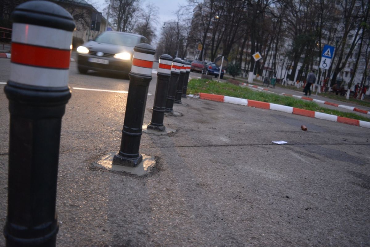 Cea mai ciudată intersecţie a oraşului „modernizată” cu piloni băgaţi în carosabil – GALERIE FOTO