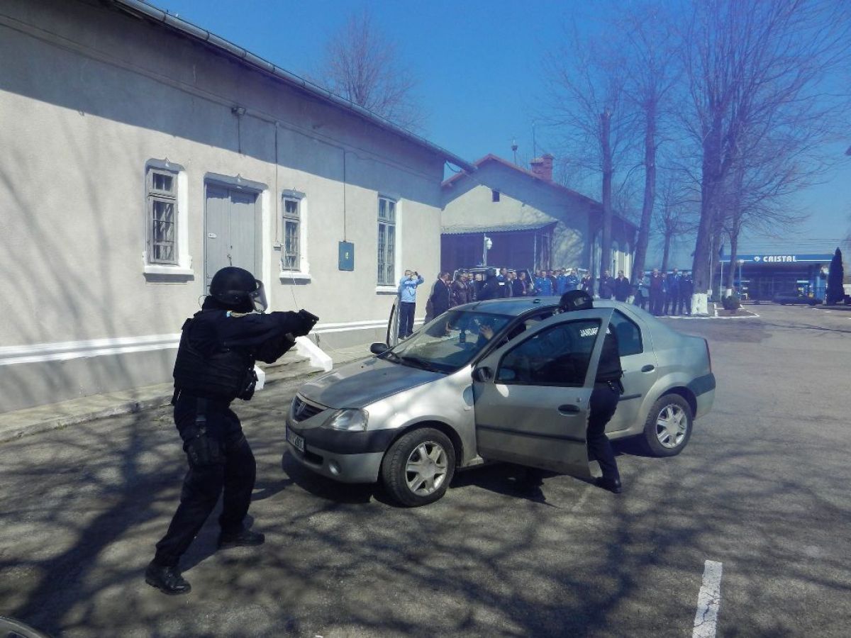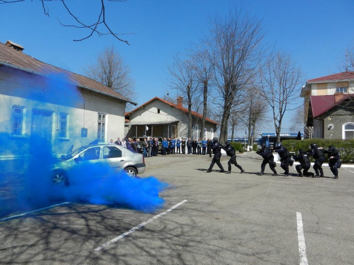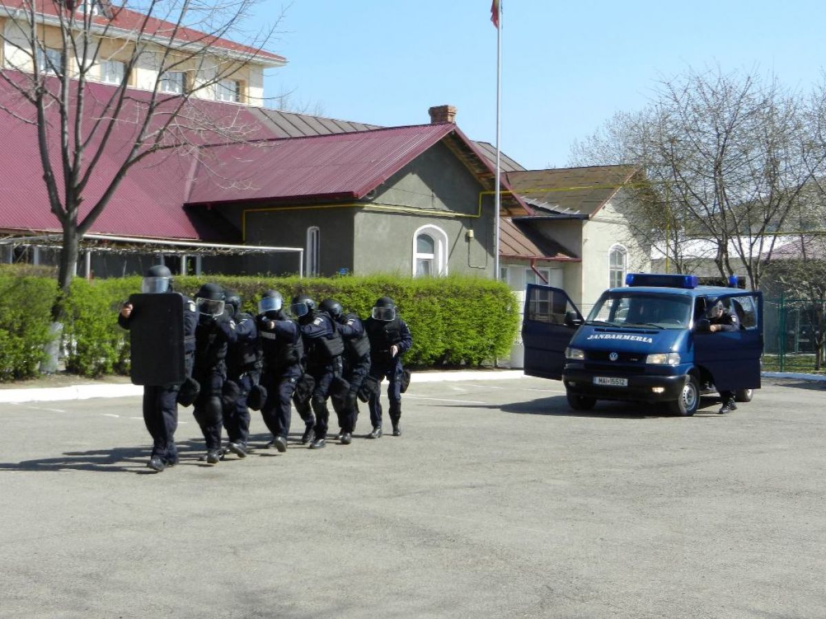 Jandarmii botoşăneni au făcut şi o demonstraţie în faţa veteranilor din care nu au lipsit “mascaţii” şi fumigenele.