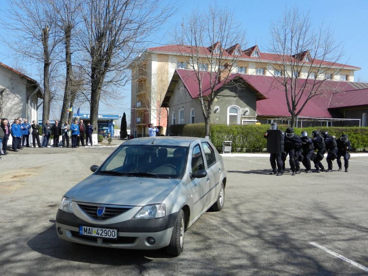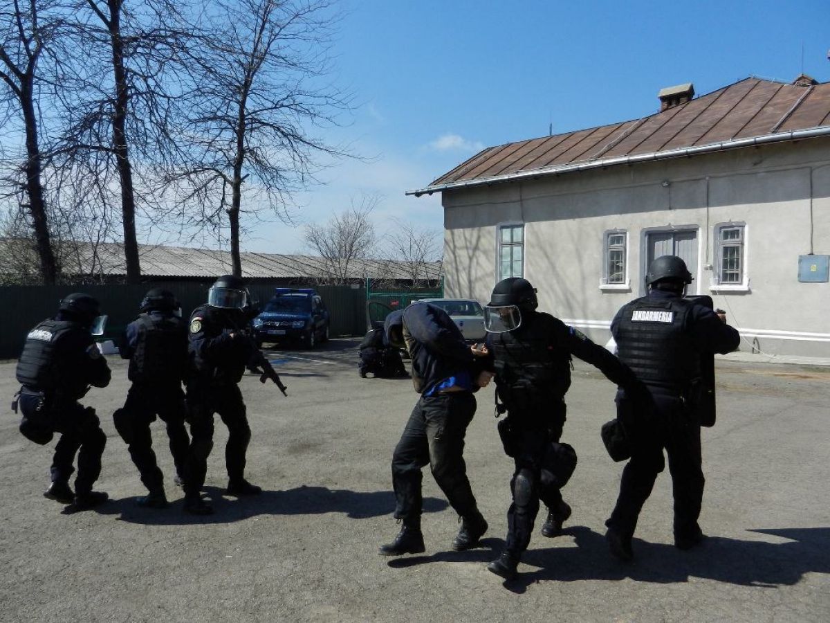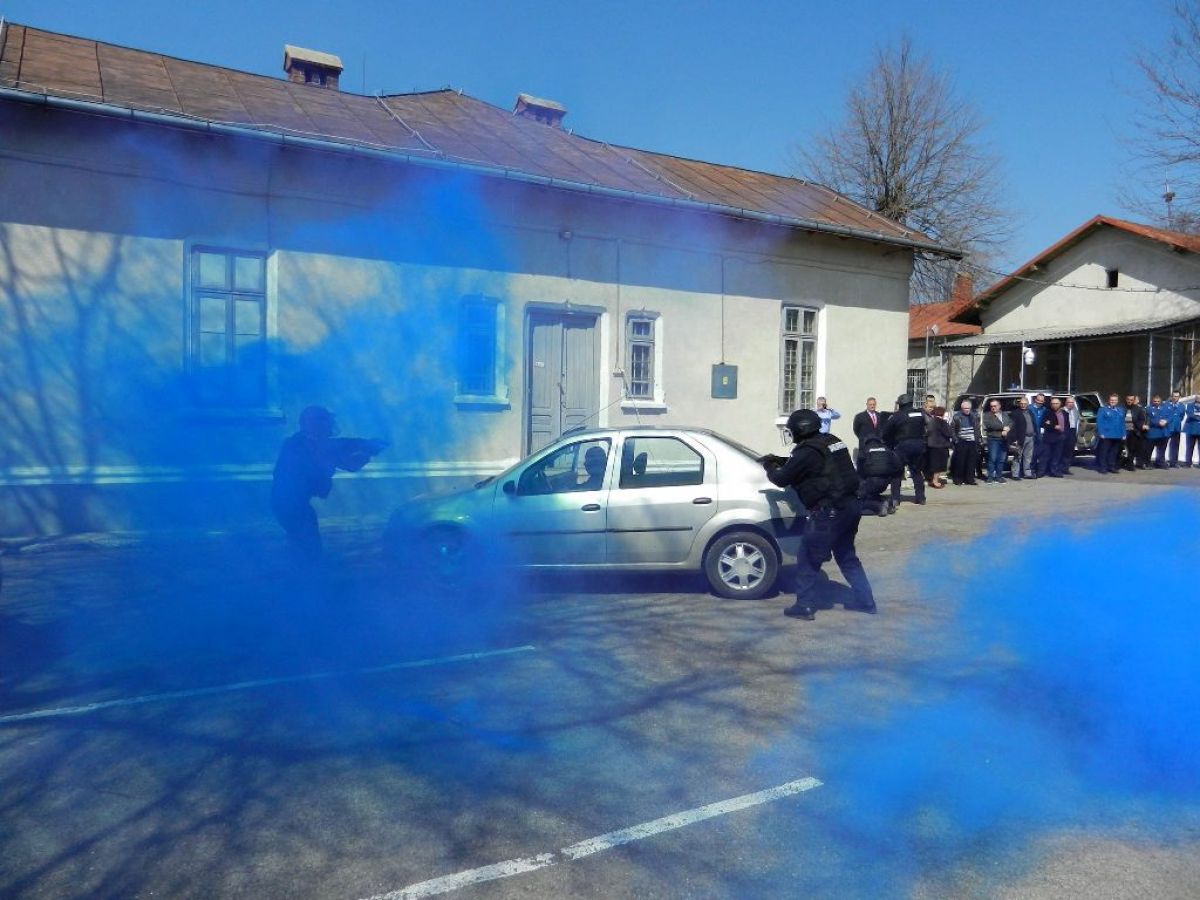 Jandarmii botoşăneni au făcut şi o demonstraţie în faţa veteranilor din care nu au lipsit “mascaţii” şi fumigenele.