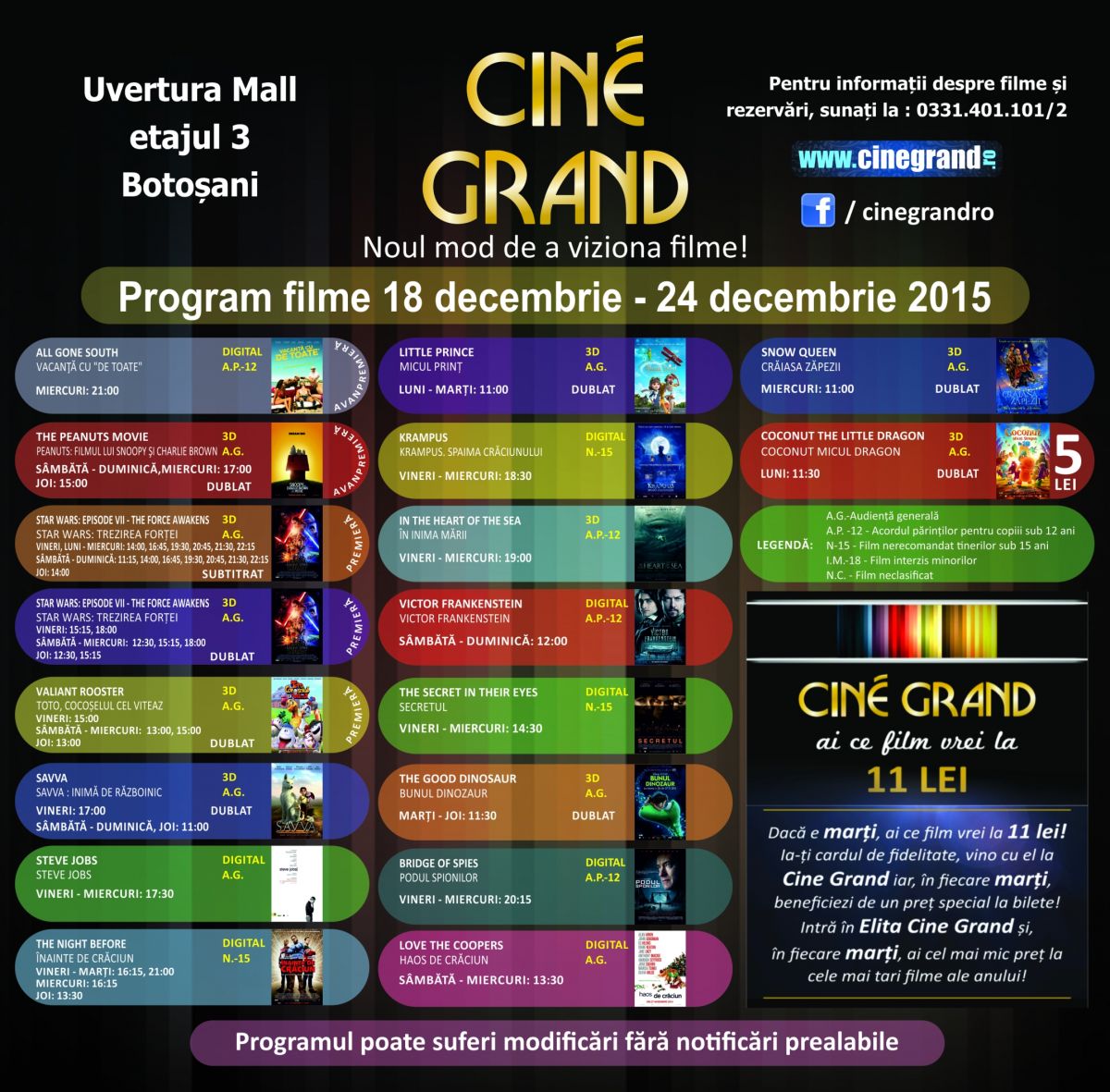 Mai jos gasiti programul intreg al filmelor pentru Cine Grand Botosani!