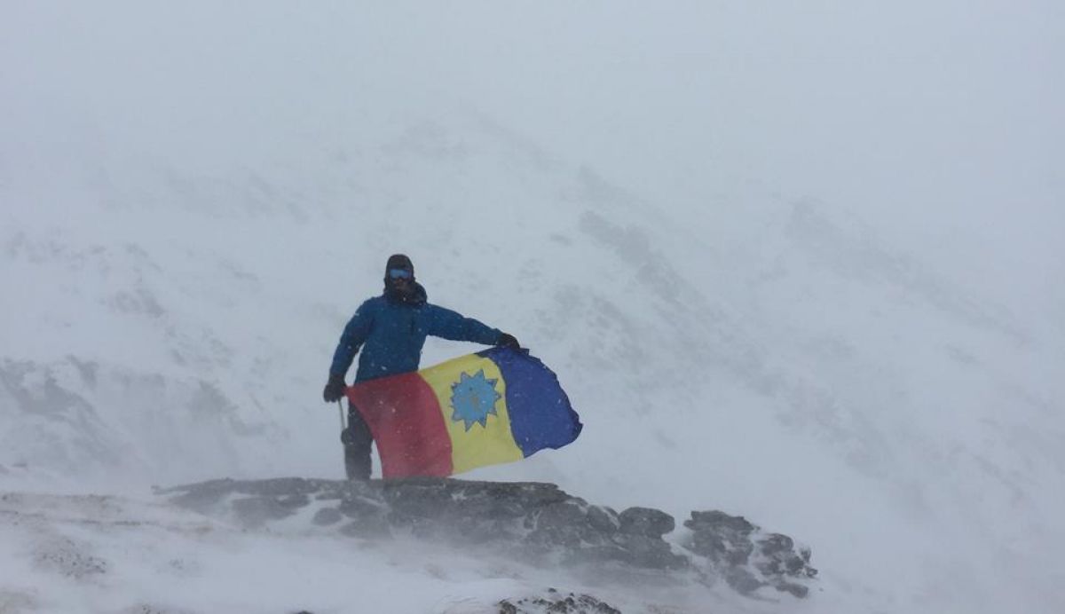 A escaladat inclusiv Vârful Moldoveanu, cel mai înalt al României, însă ieri a fost surprins de viscolul și ceața din apropierea Vârfului Omu.