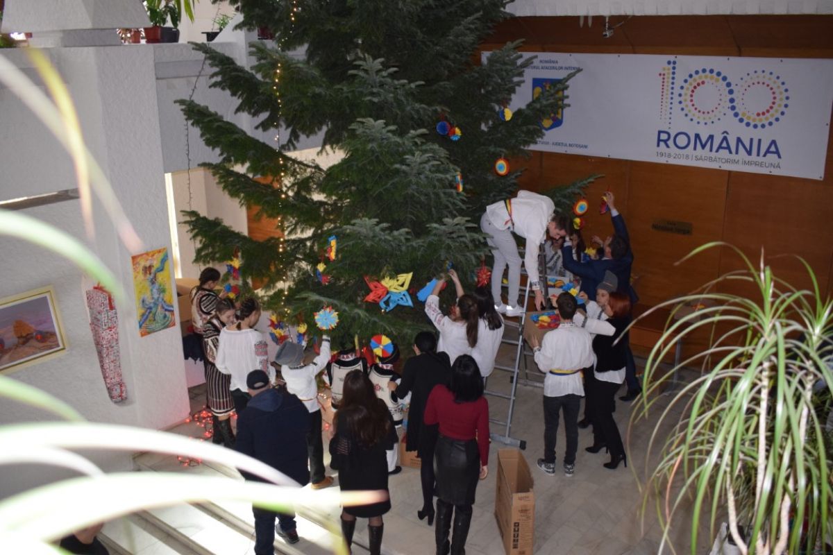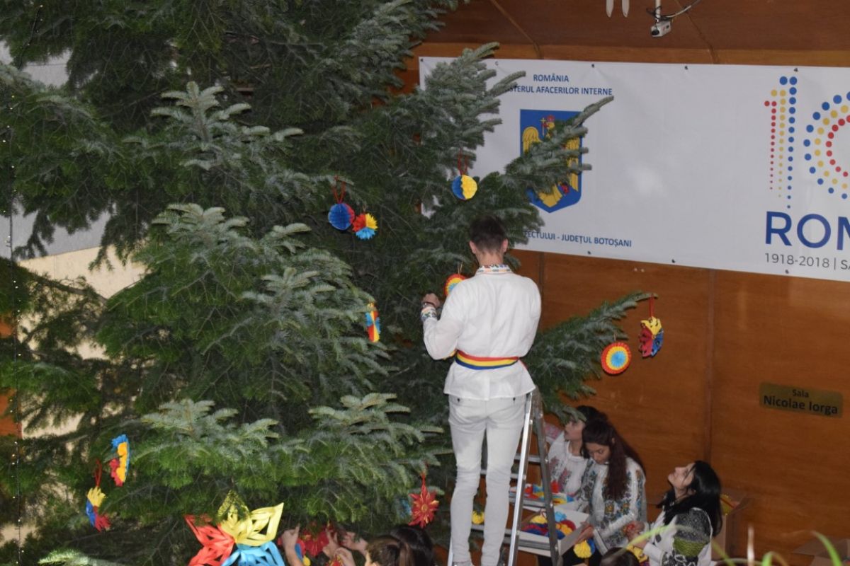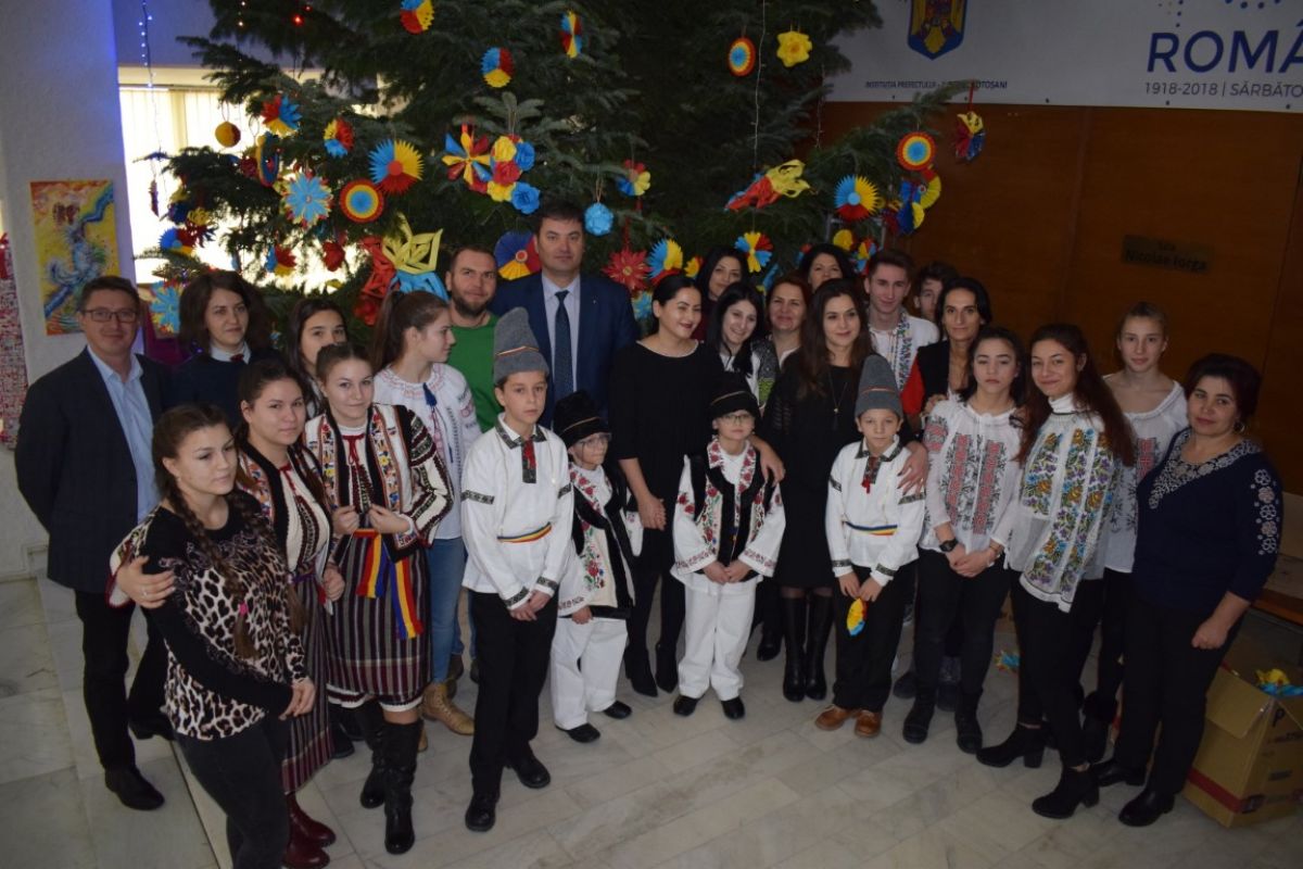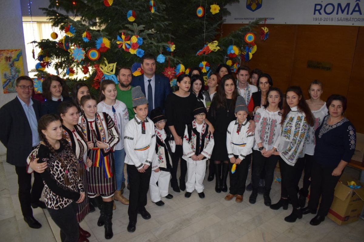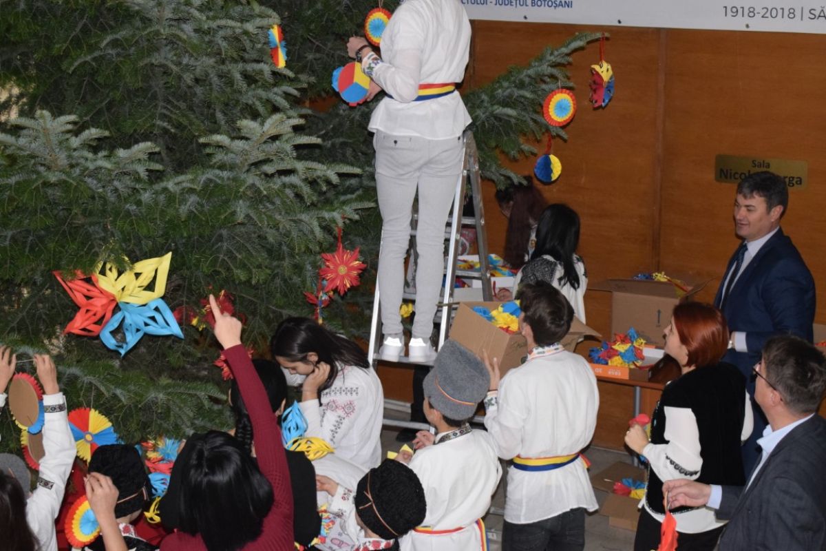 „Și anul acesta am apelat la copiii din centrele de plasament ale DGASPC Botoșani pentru a ne sprijini cu decorațiunile pentru bradul de la Prefectură. Acești copii au fost coordonați de șefii de centre și de instructorii de educație și precum vedeți au făcut niște decorațiuni foarte frumoase de modele și de măriri diferite, în culorile tricolorului. I-am mai solicitat astăzi să vină la Prefectură să împodobim bradul și ne sunt de un real folos”,
