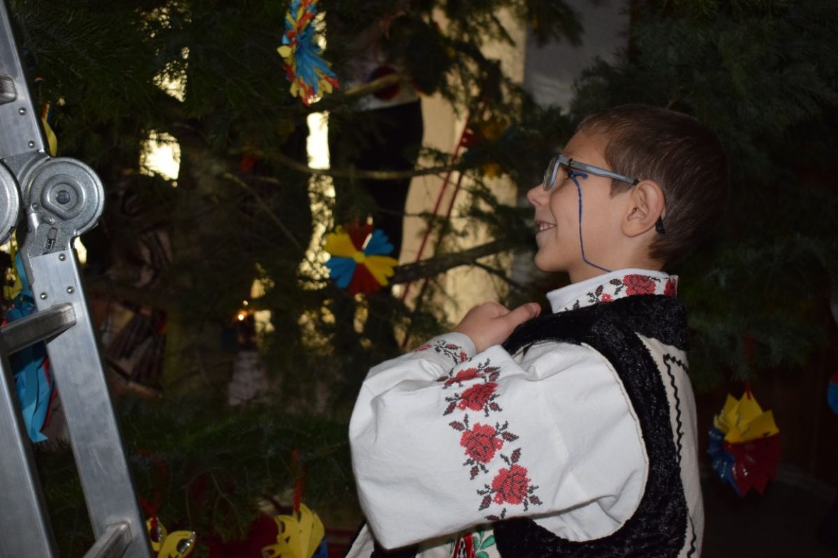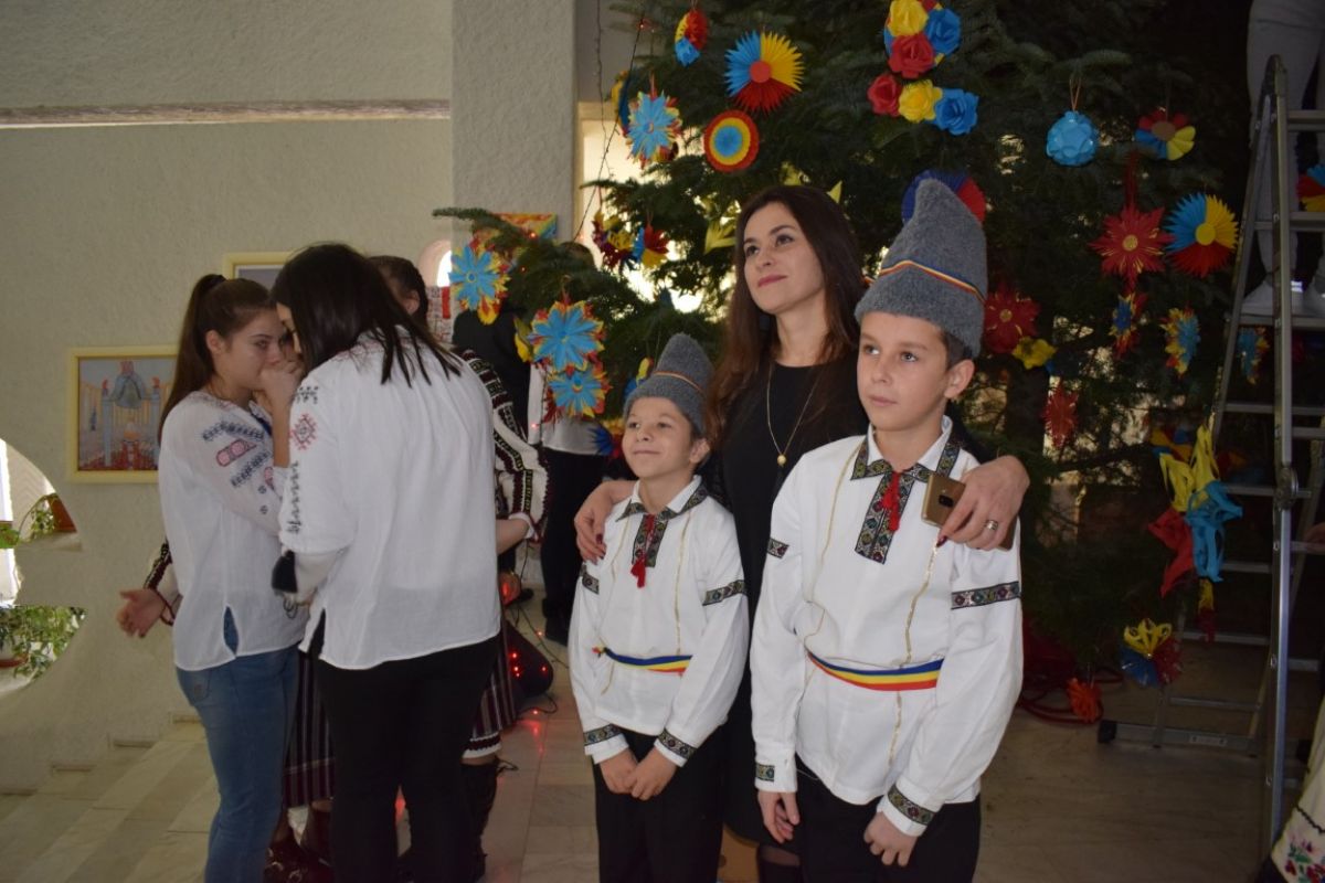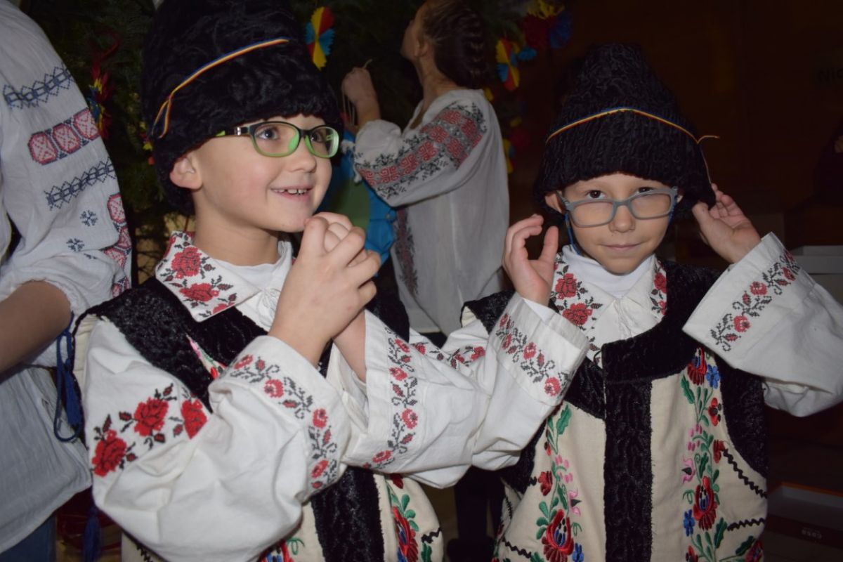 Au venit îmbrăcați în straie populare și învăluiți de un entuziasm copilăresc. Doi dintre ei au cântat, cei mai mici băieți, au cântat și încântat printre ramuri verzi de brad și ornamente tricolore.