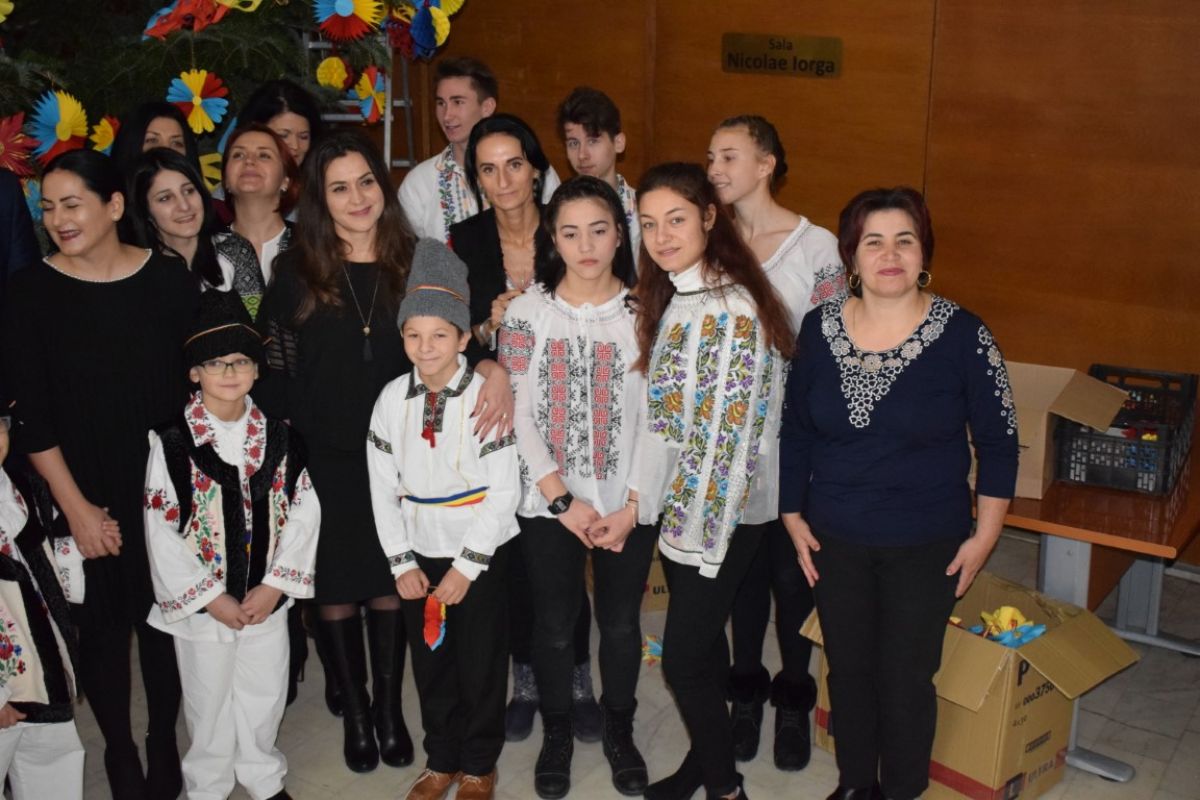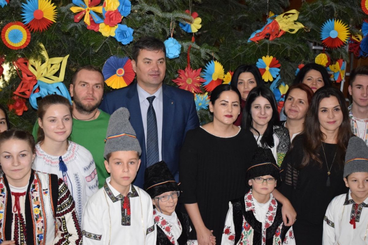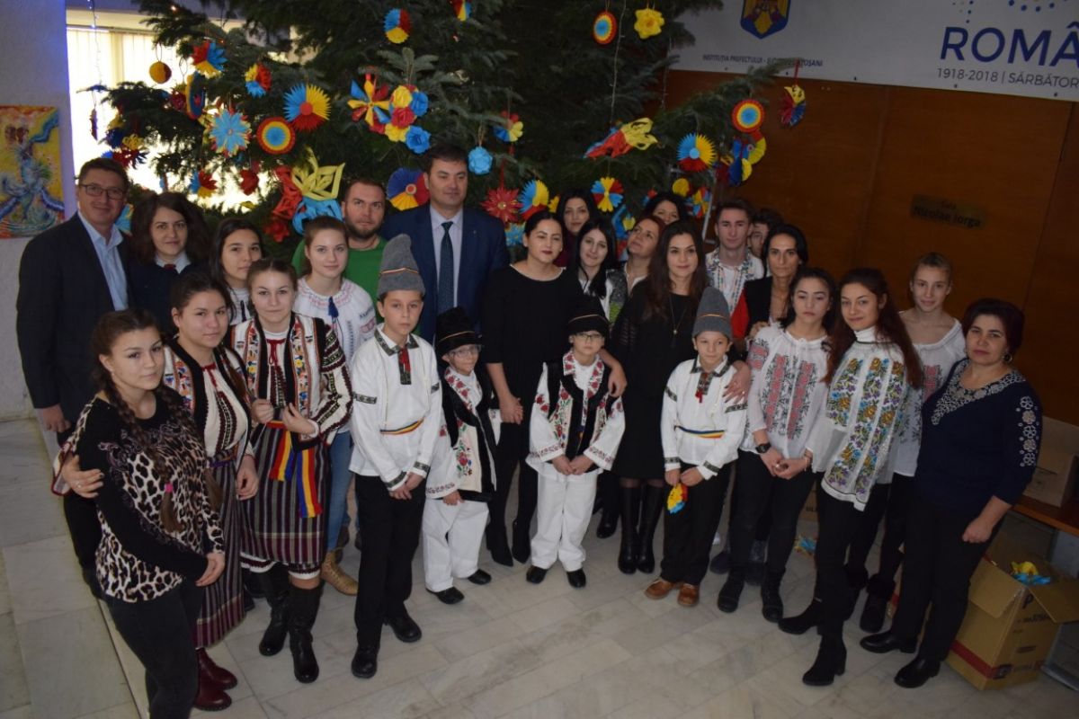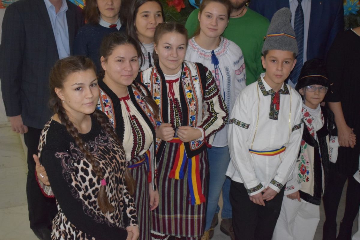 Au venit îmbrăcați în straie populare și învăluiți de un entuziasm copilăresc. Doi dintre ei au cântat, cei mai mici băieți, au cântat și încântat printre ramuri verzi de brad și ornamente tricolore.