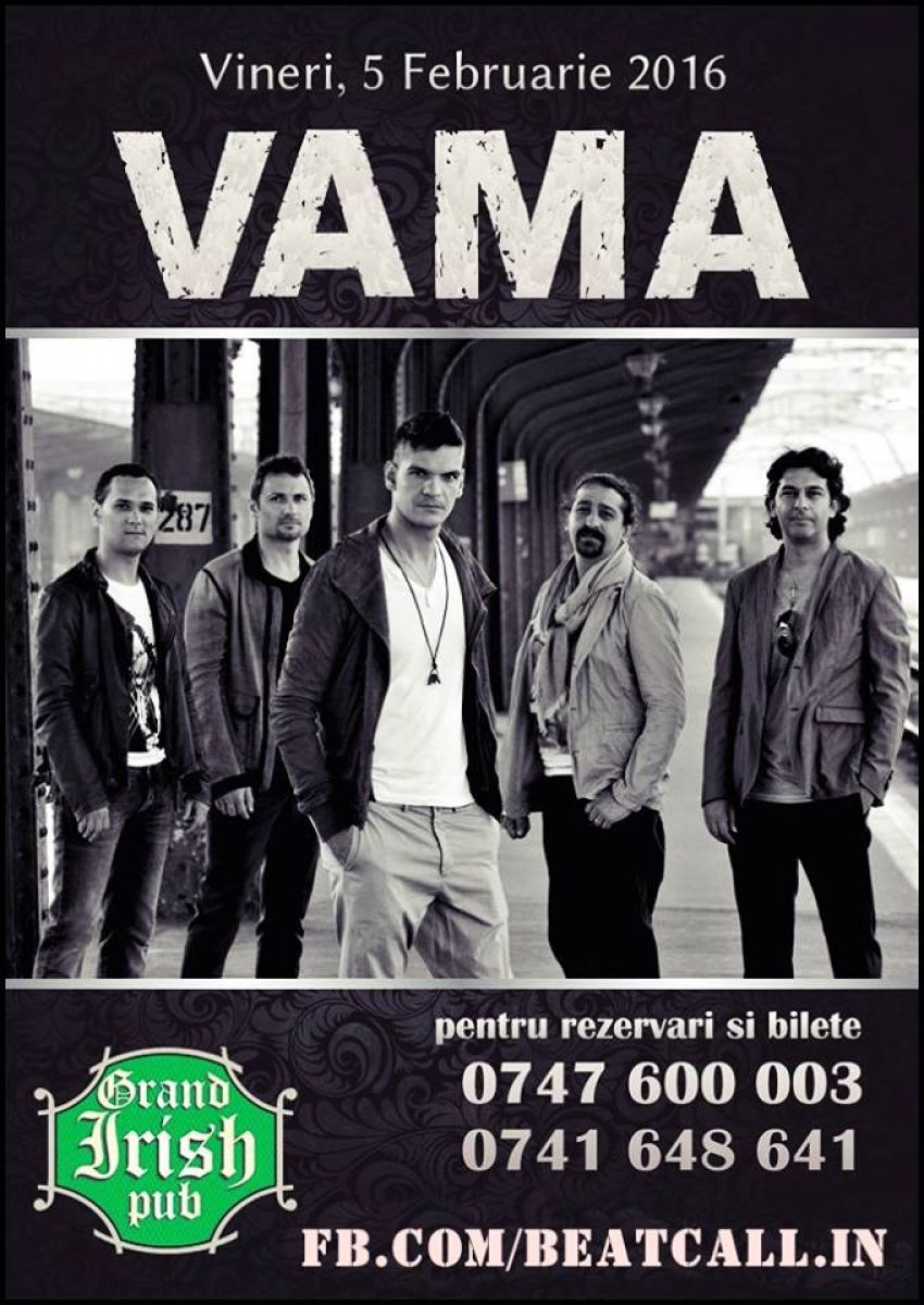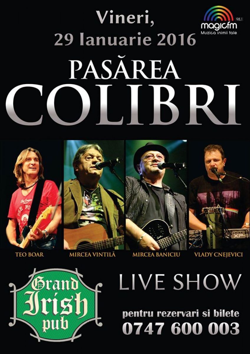 Așadar, dacă plănuiți la sfârșitul acestei luni o ieșire cu prietenii în oraș, nu ezitați să vă rezervați o masă în Grand Irish Pub, asta deoarece pe data de 29 ianuarie 2016, trupa Pasărea Colibri este așteptată să susțină un live show, după care, distracția nu se oprește aici...pe data de 5 februarie 2016, trupa Vama revine la Botoșani pentru un concert de neuitat. Prețul biletului la show-ul oferit de Vama este între 30 şi 65 de lei, în funcție de așezarea în sală.
