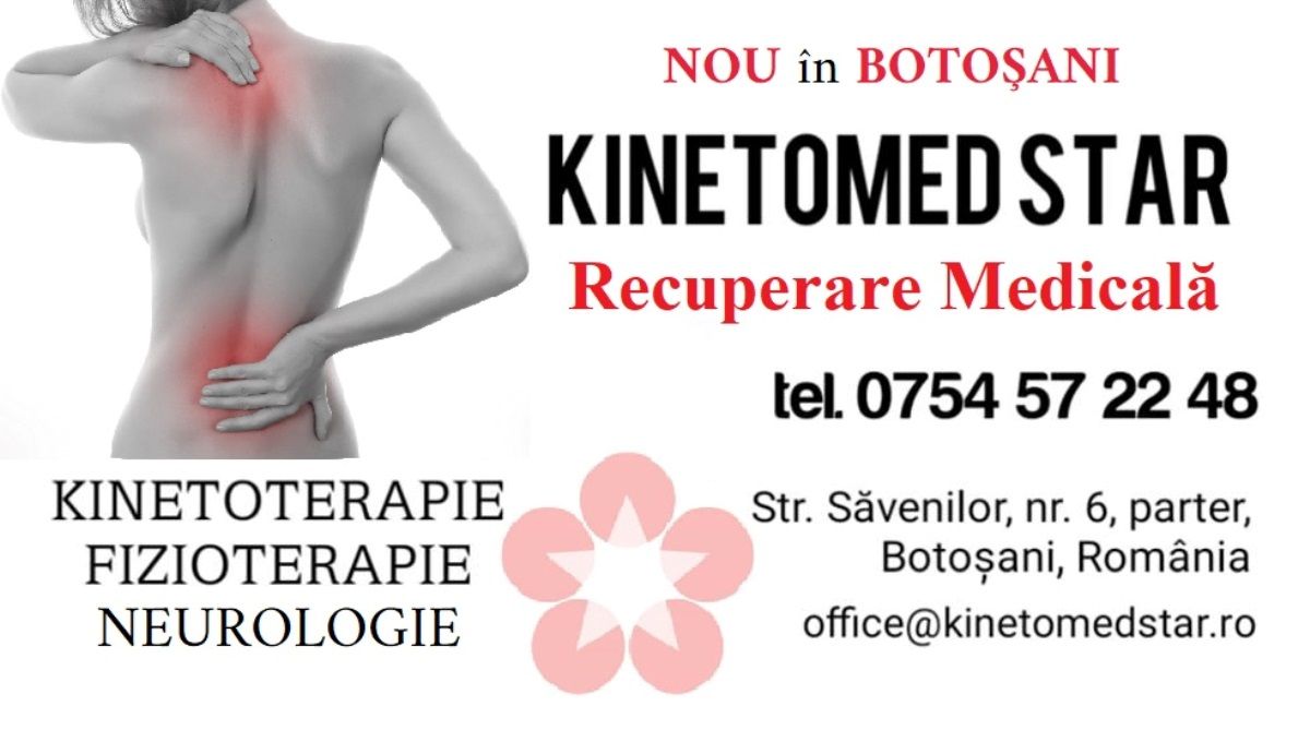 (P) În luna februarie a acestui an s-a deschis la Botosani, cu ajutorul programului guvernamental „Start-Up Nation 2017” centrul medical „KINETOMED STAR”, cel mai modern Centru de Recuperare Medicală din Botoșani.