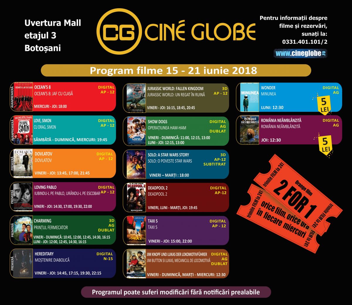 Vezi mai jos PROGRAMUL complet al filmelor ce rulează la Cine Globe