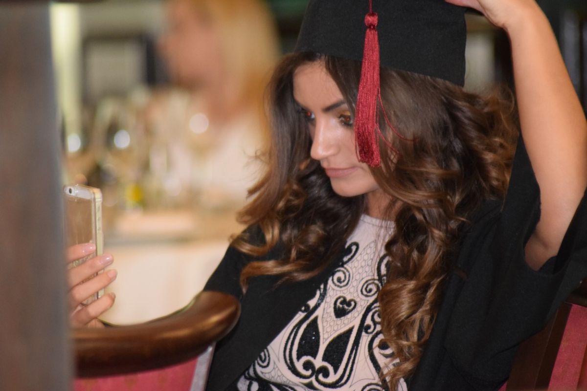 Una dintre absolvente, de emoție a început efectiv să lăcrimeze. Discret și-a șters lacrimile care-i pecetluiesc începutul de carieră medicală.