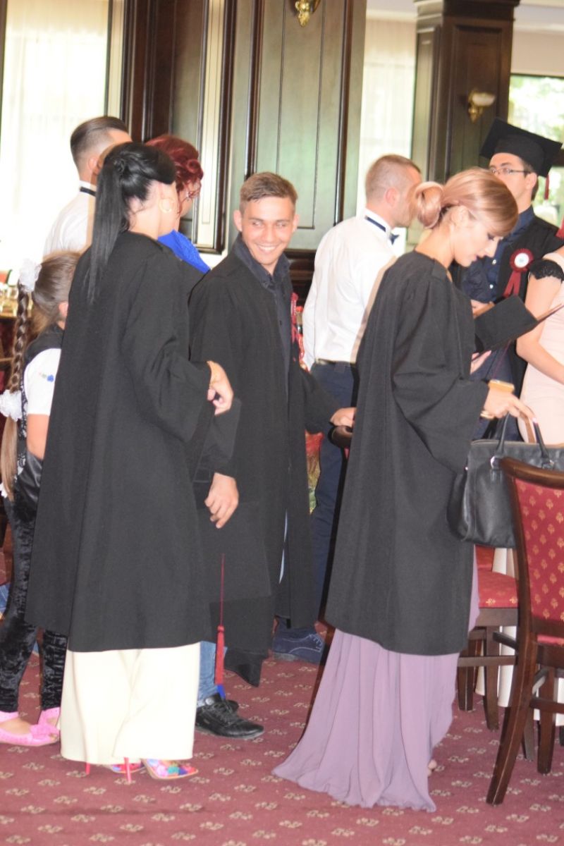 Absolvenții, fete și băieți deopotrivă, de vârste oarecum diferite au avut alături rude și prieteni și au fost felicitați de invitații la acest eveniment.