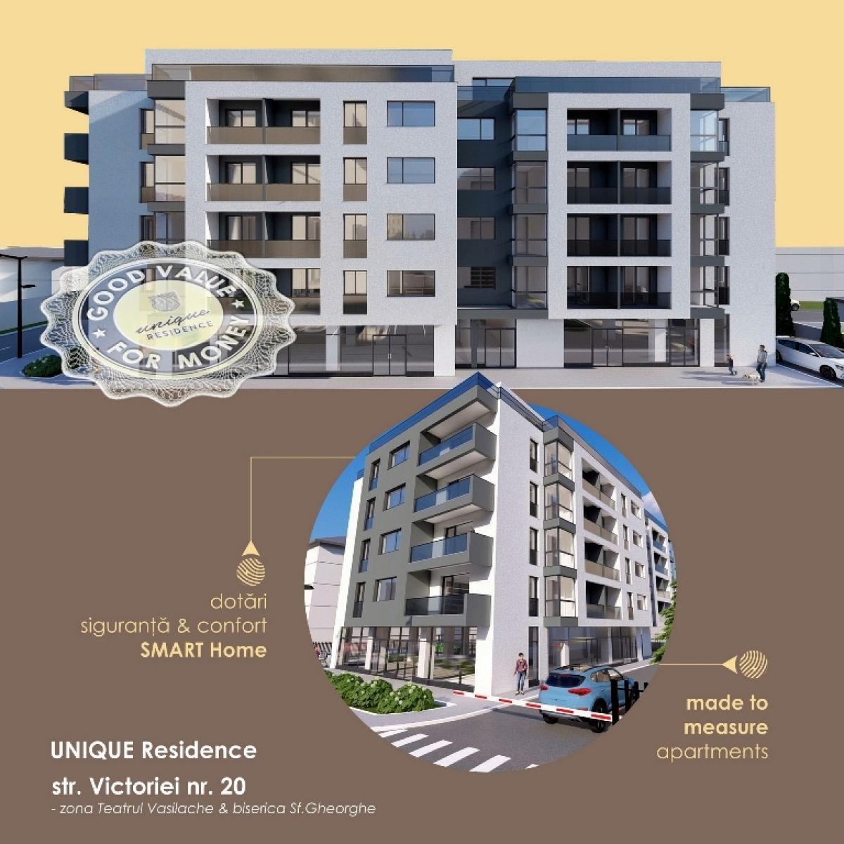 Vă propunem o nouă experiență prin care aveți posibilitatea de a fi arhitecții propriului apartament în noul ansamblu de apartamente Made To Measure UNIQUE Residence Victoriei: recompartimentări (în faza de proiectare), amenajări interioare și finisaje, echipare și mobilare, dotări de siguranță și confort Smart Home, sisteme de încălzire, ventilație și aer condiționat, aparataje electrice și corpuri de iluminat, precum și opțiuni pentru pachete cu dotări superioare personalizate și facilități extinse.