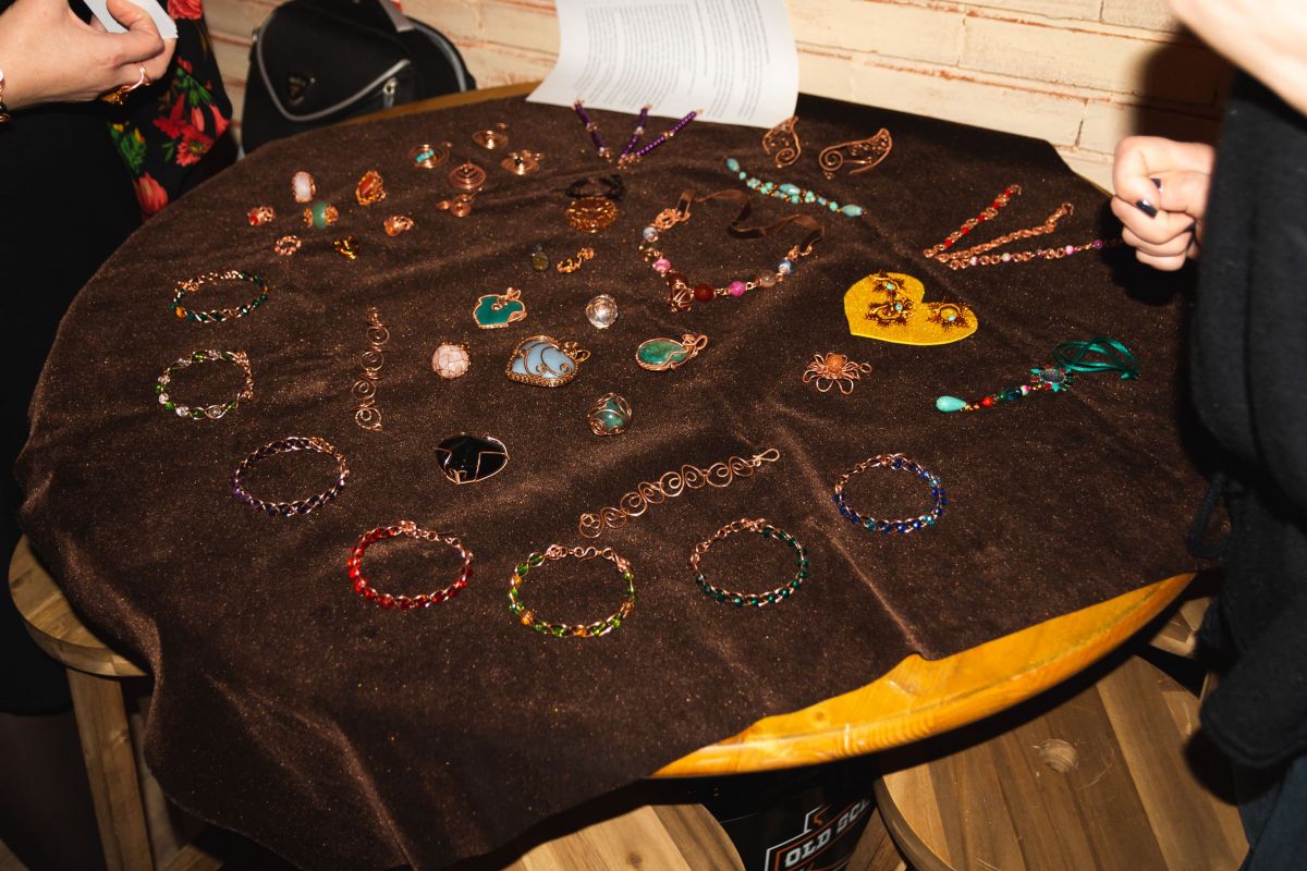 Seara, pe de-o parte cu un iz mieros de romantism în stilul Dragobetelui ce se apropie, pe de alta cu stilul tineresc și plin de viață al unei imaginate cârciumi vechi și pline de cochetării și muzică autentică, a propus și o expoziție de bijuterii de cupru handmade, încrustate cu pietre prețioase de tot felul, realizate de botoșăneanca Gabriela Hrițcu.