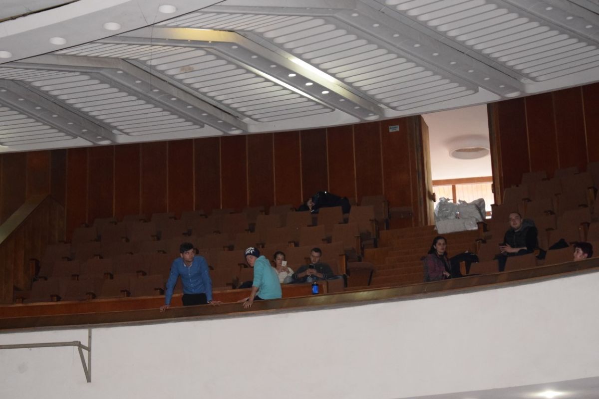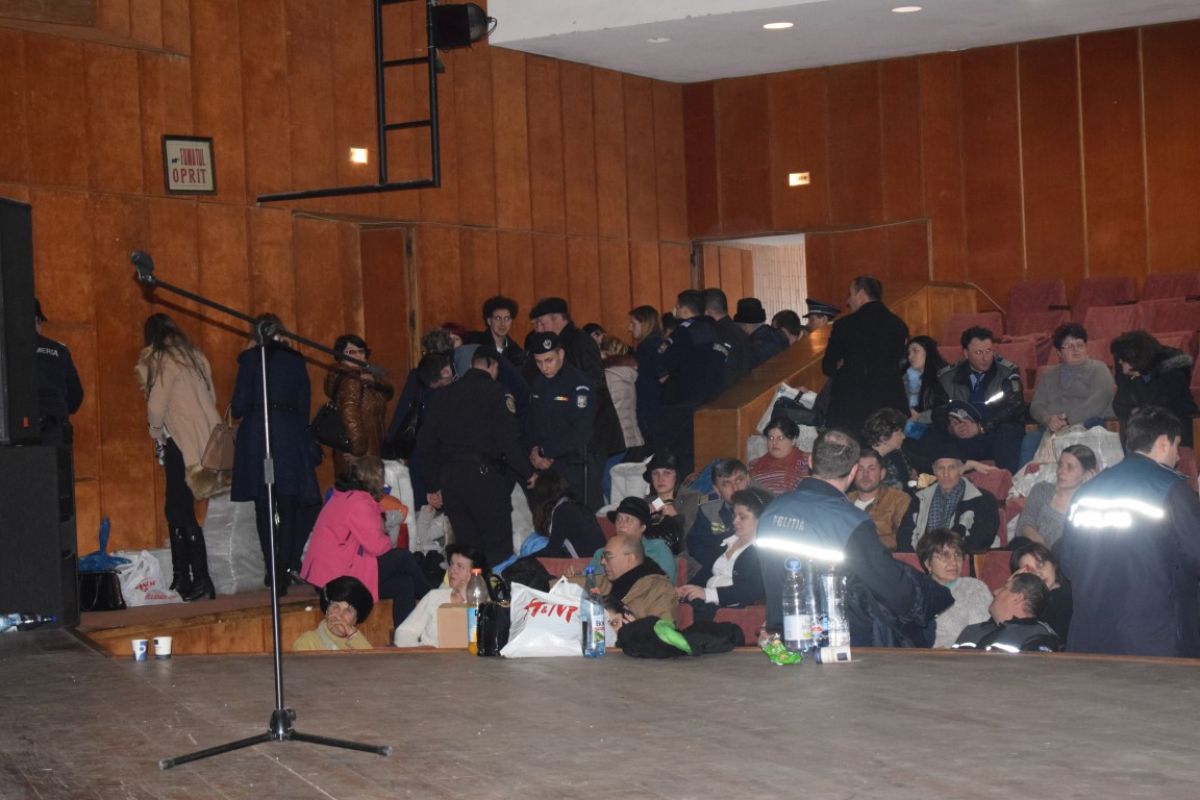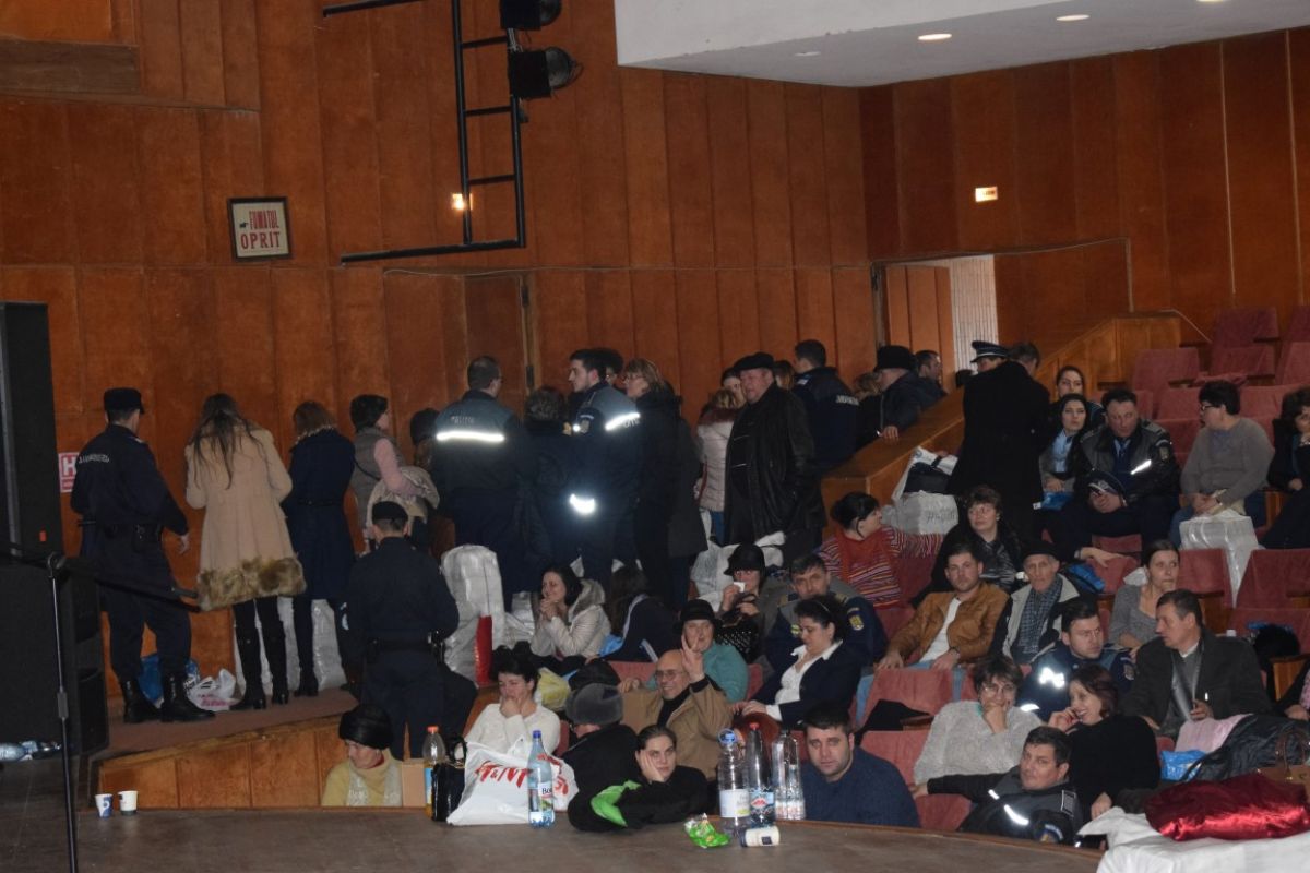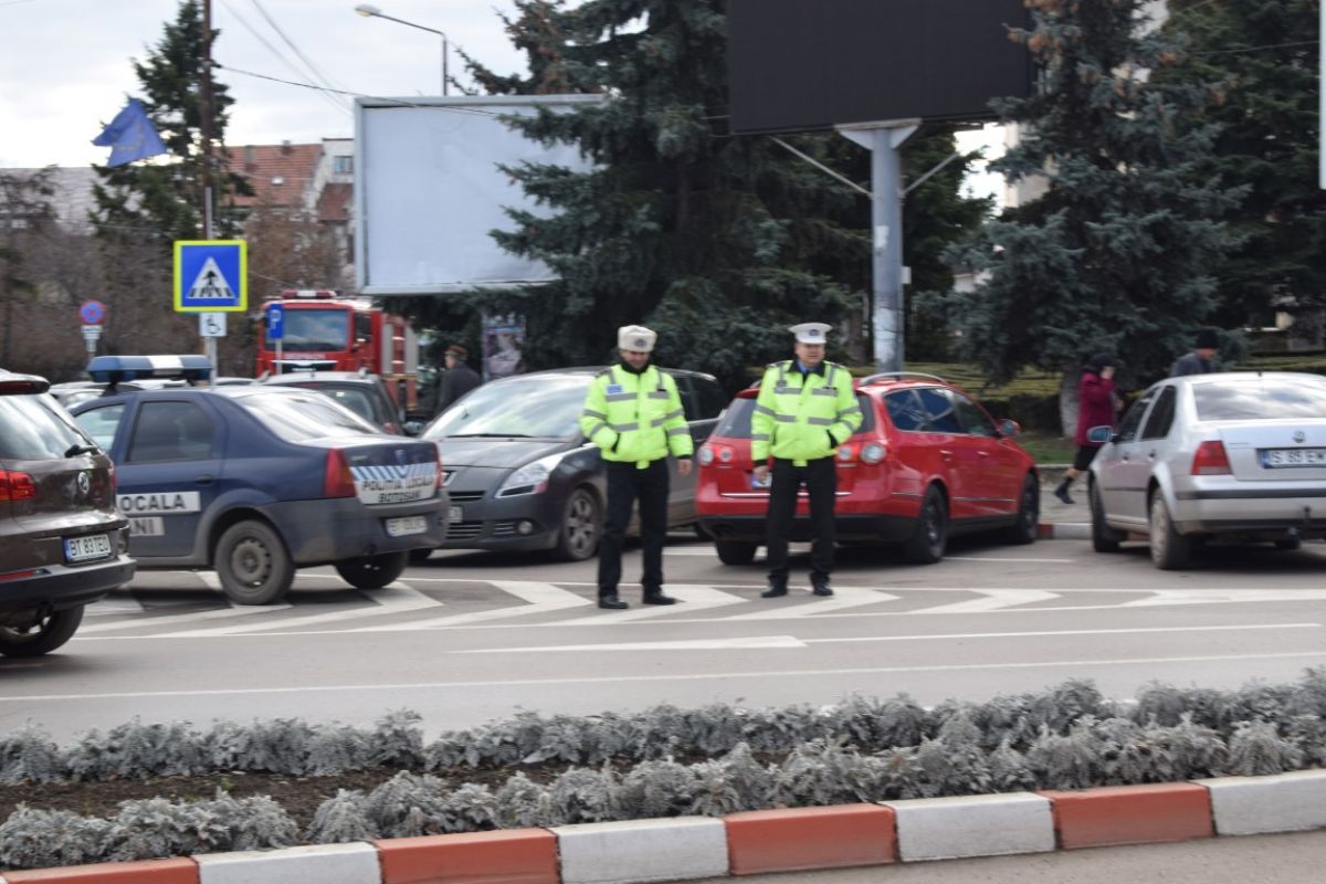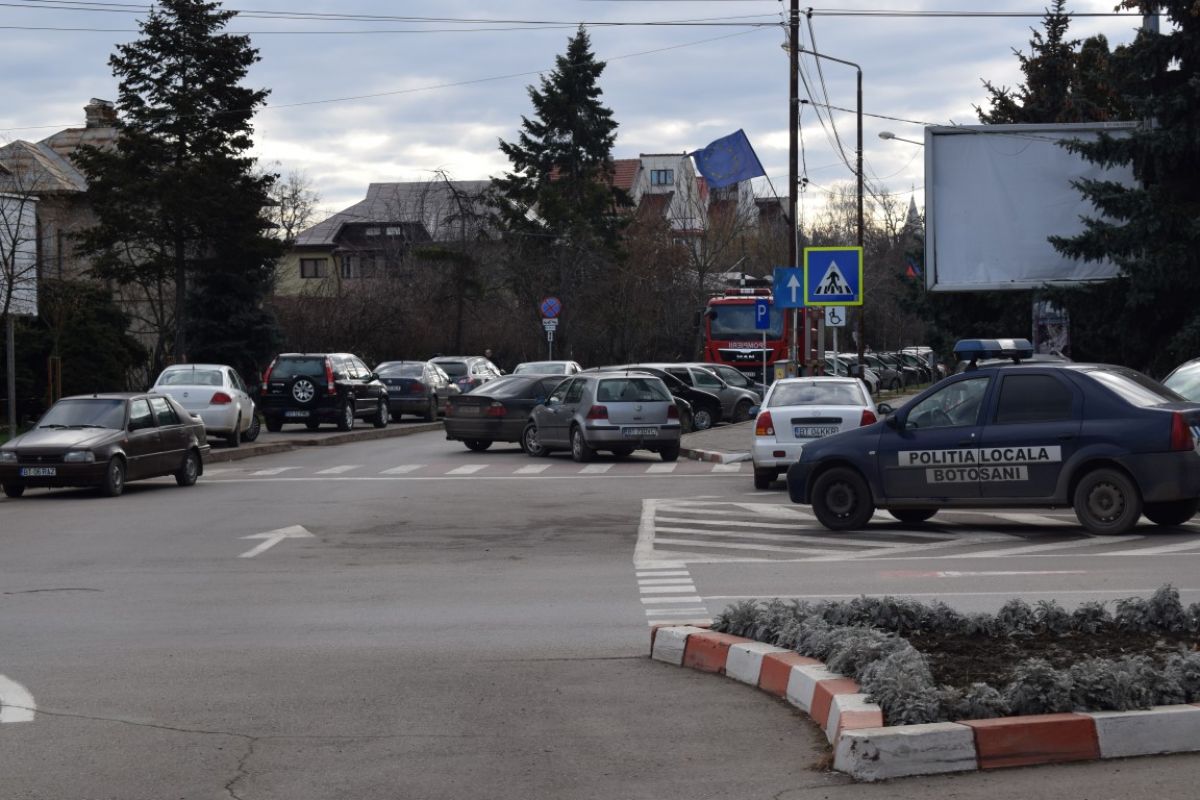 Și în exterior traficul este îngreunat de numeroasele mașini care stau parcate în jurul instituției de cultură. Pe prima bandă ce coboară de la Spitalul Județean Mavromati, deja nu mai este loc, iar echipajele de Poliție sunt și ele la datorie.