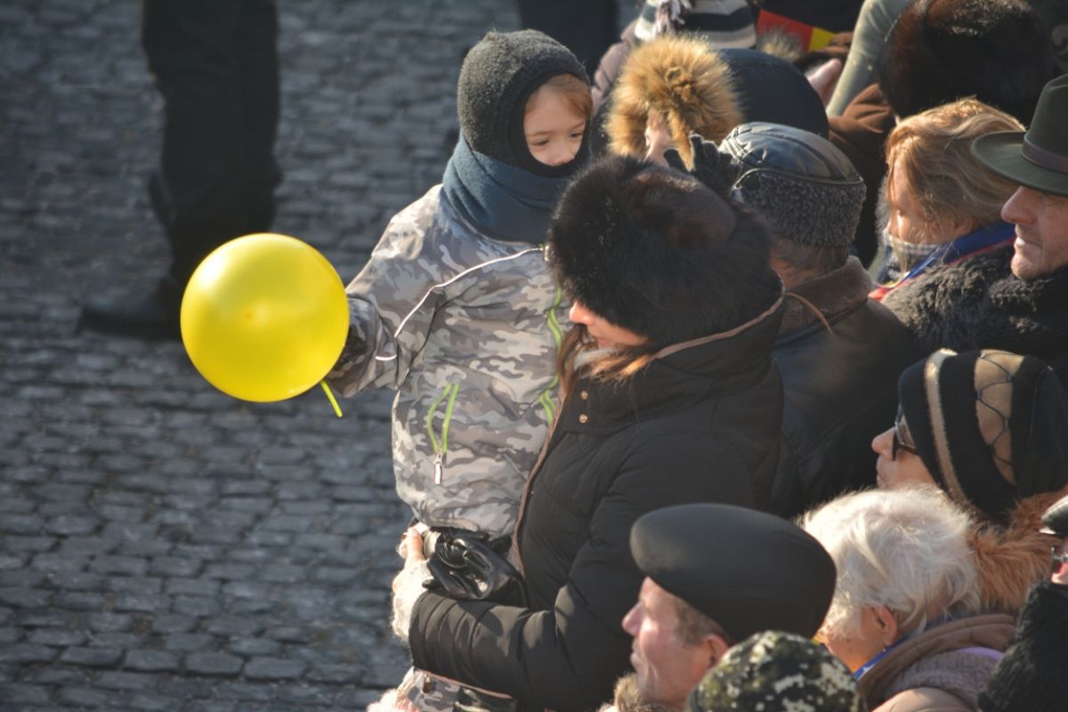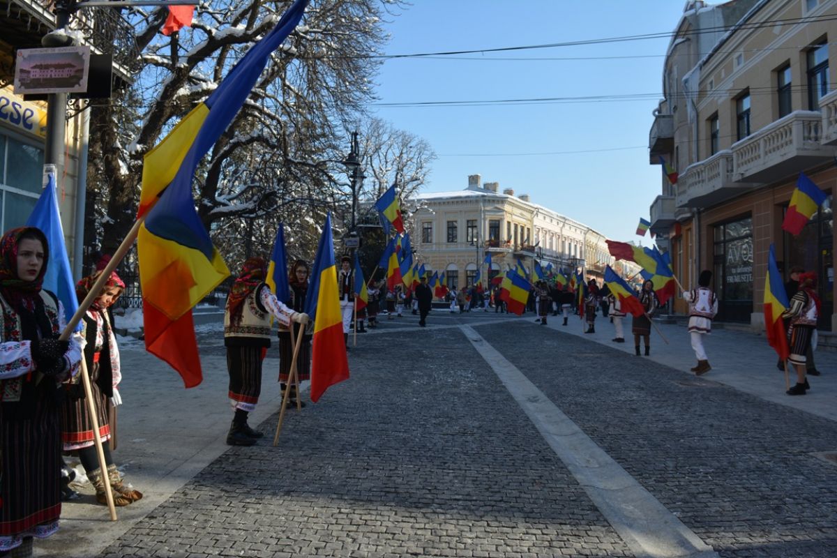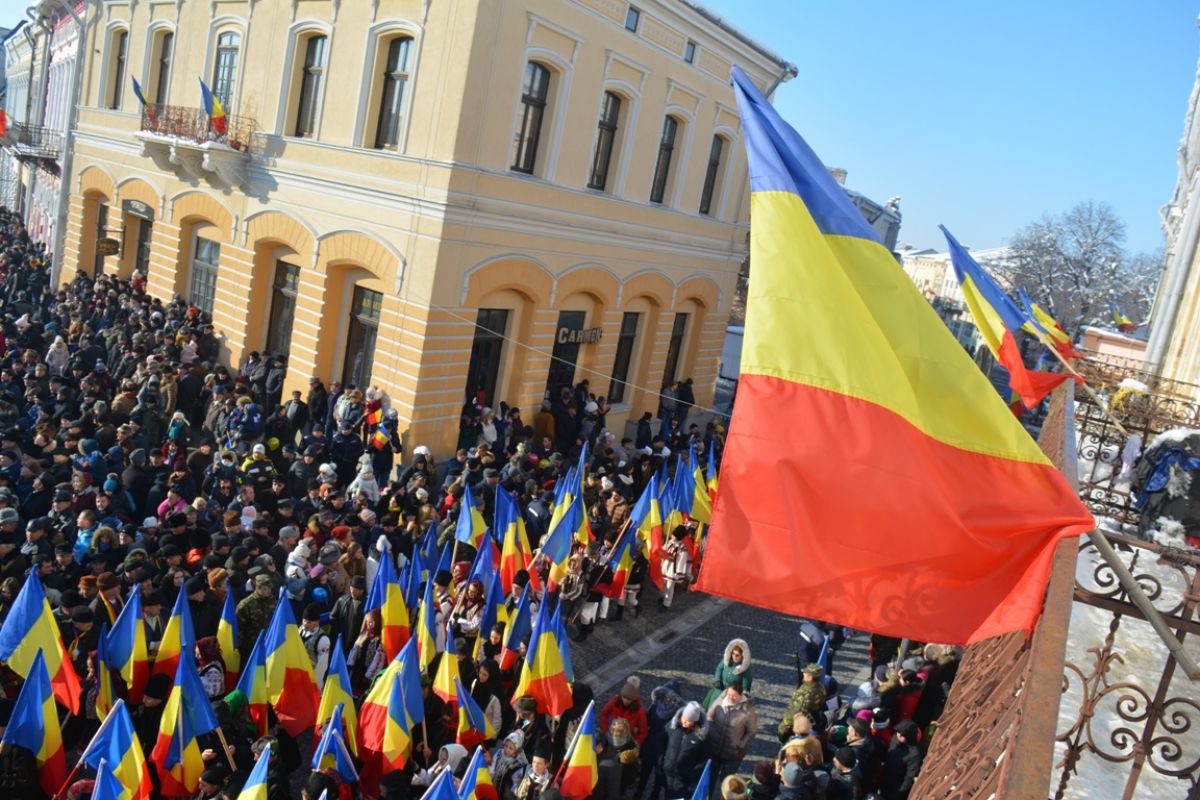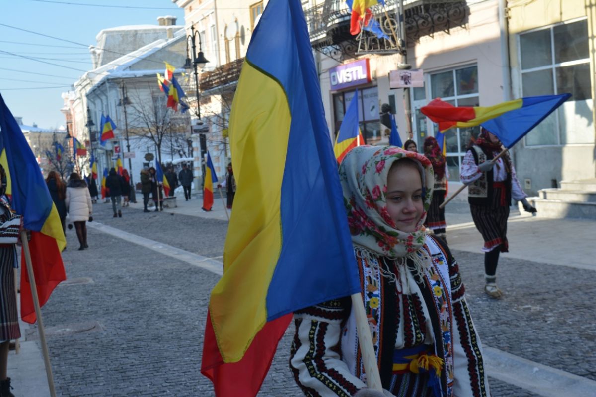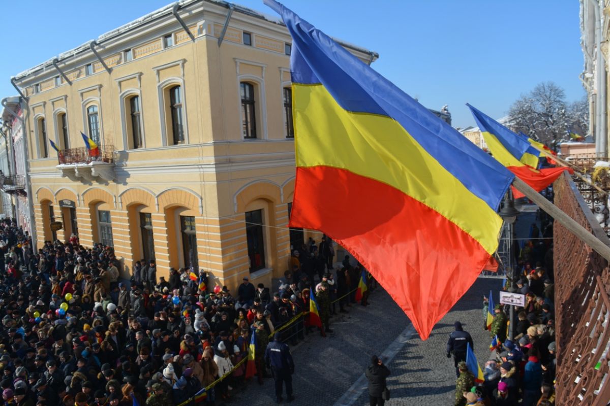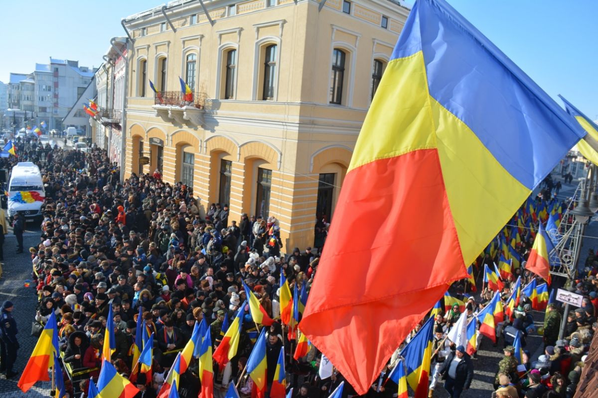 Prefectul Dan Şlincu a primit onorul de la Garda Militară, după care o mulţime de oameni s-a revărsat spre Piaţa 1 Decembrie 1918 agitând sute de drapele naţionale.