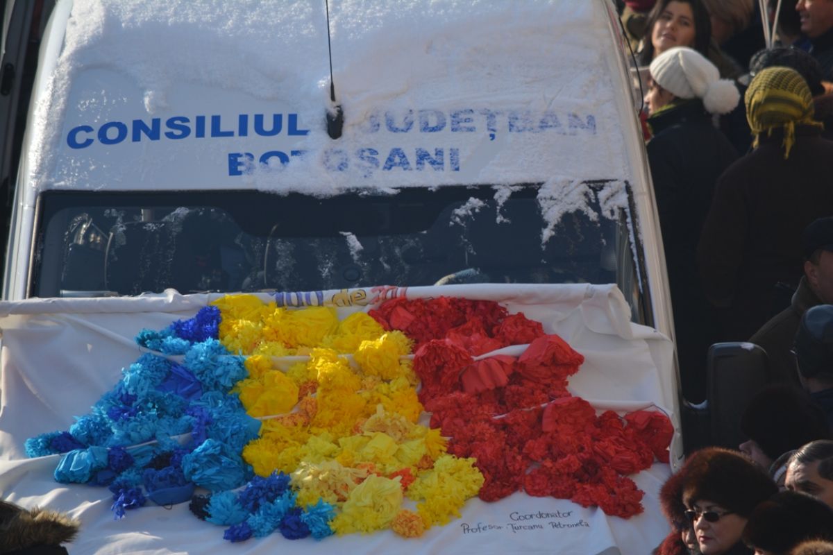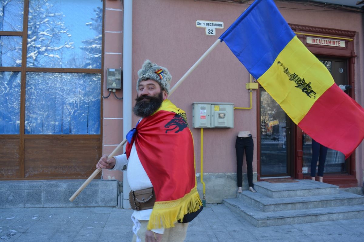 Printre ei şi un botoşănean îmbrăcat ca geto-dacii şi care purta un tricolor ce avea desenată stema străvechii Dacia.