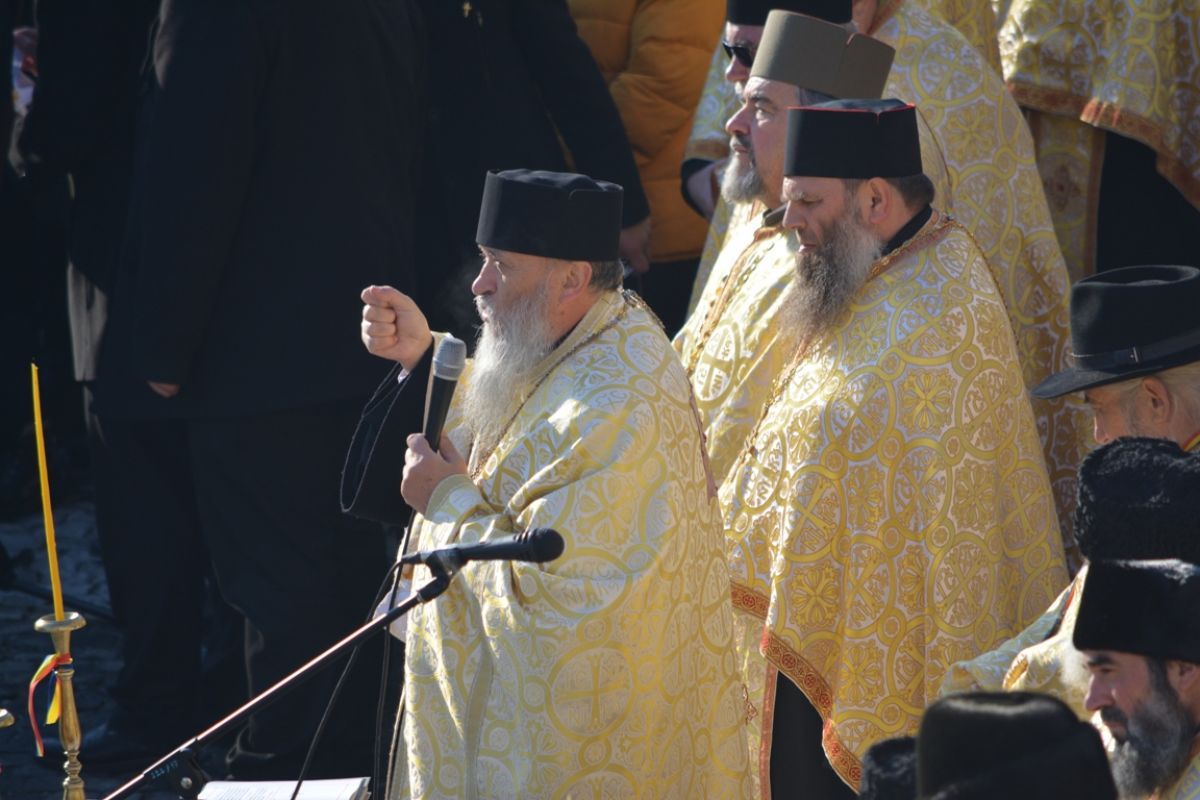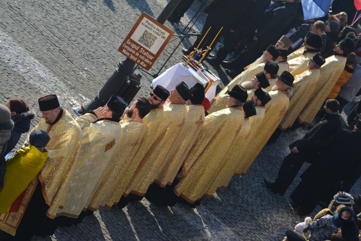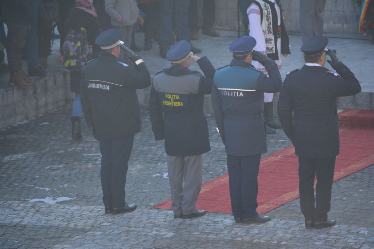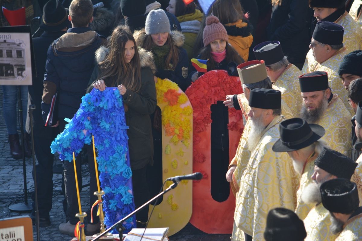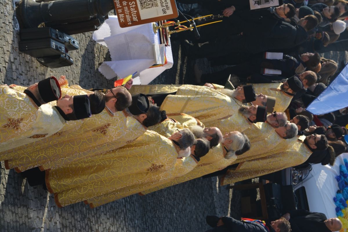 Un cor al elevilor a cântat „Deşteaptă-te, române!” după care un sobor de 20 de preoţi condus de părintele protopop Lucian Leonte a ţinut o slujbă.