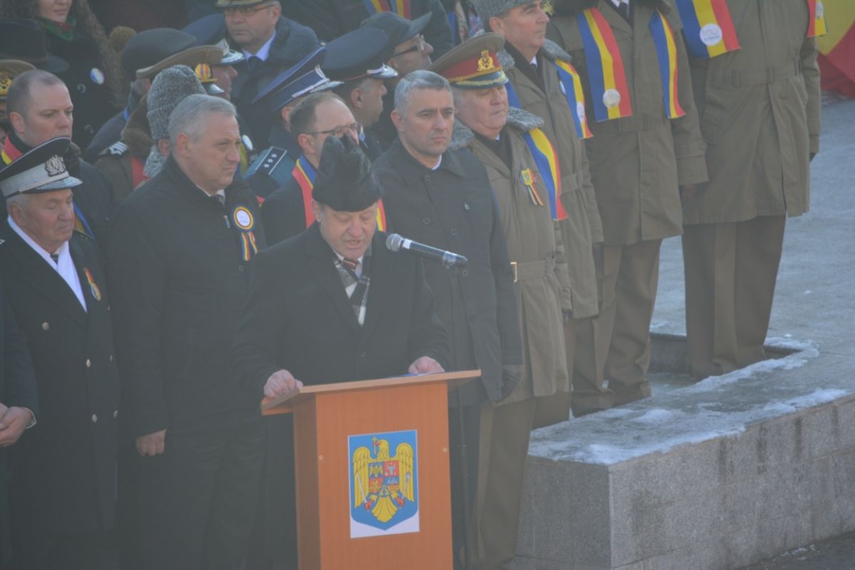 Nu a luat cuvântul vreun politician, ci doar colonelul în rezervă Sergiu Balanovici. Doctor în istorie, şeful secţiei de istorie a Muzeului Judeţean a vorbit despre însemnătatea Centenarului şi a explicat contextul în care s-a produs momentul de graţie de la 1918.