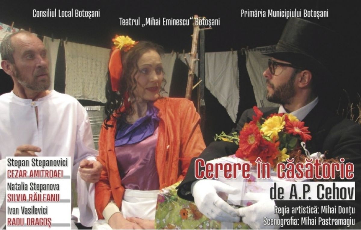 Pe 19 octombrie de la ora 17.00, în sala cinematografului „Unirea” se joacă „Cerere în căsătorie”, un spectacol în regia lui Mihai Donțu.