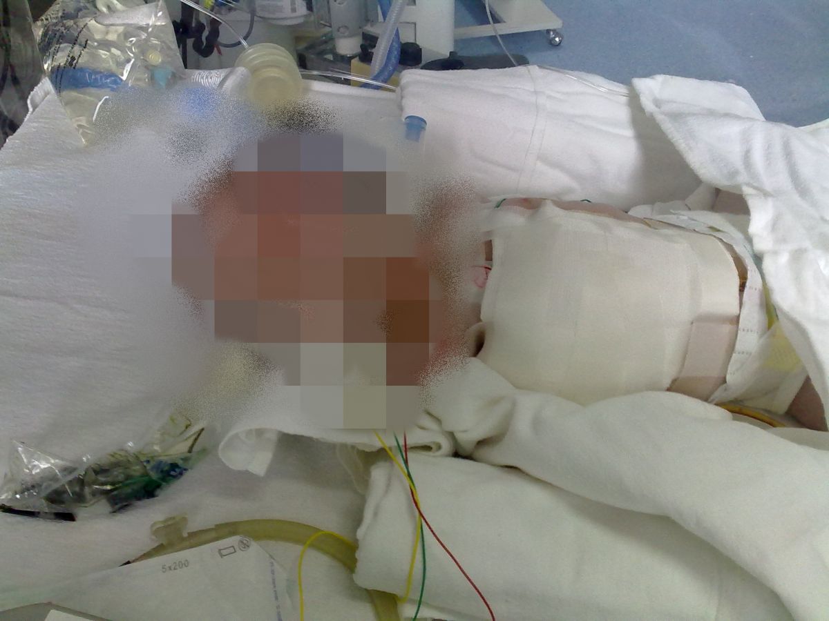 Aceasta a fost abia prima dintre intervenţii, urmând ca la vârsta de trei luni să i se refacă palatul moale şi buzele, pentru a se putea alimenta normal, la vârsta de doi ani să i se refacă defectul osos prin transplant de material osos, iar după doi ani să înceapă cosmetizările de refacere a feţei. Sursa: Ziarul de Iași.