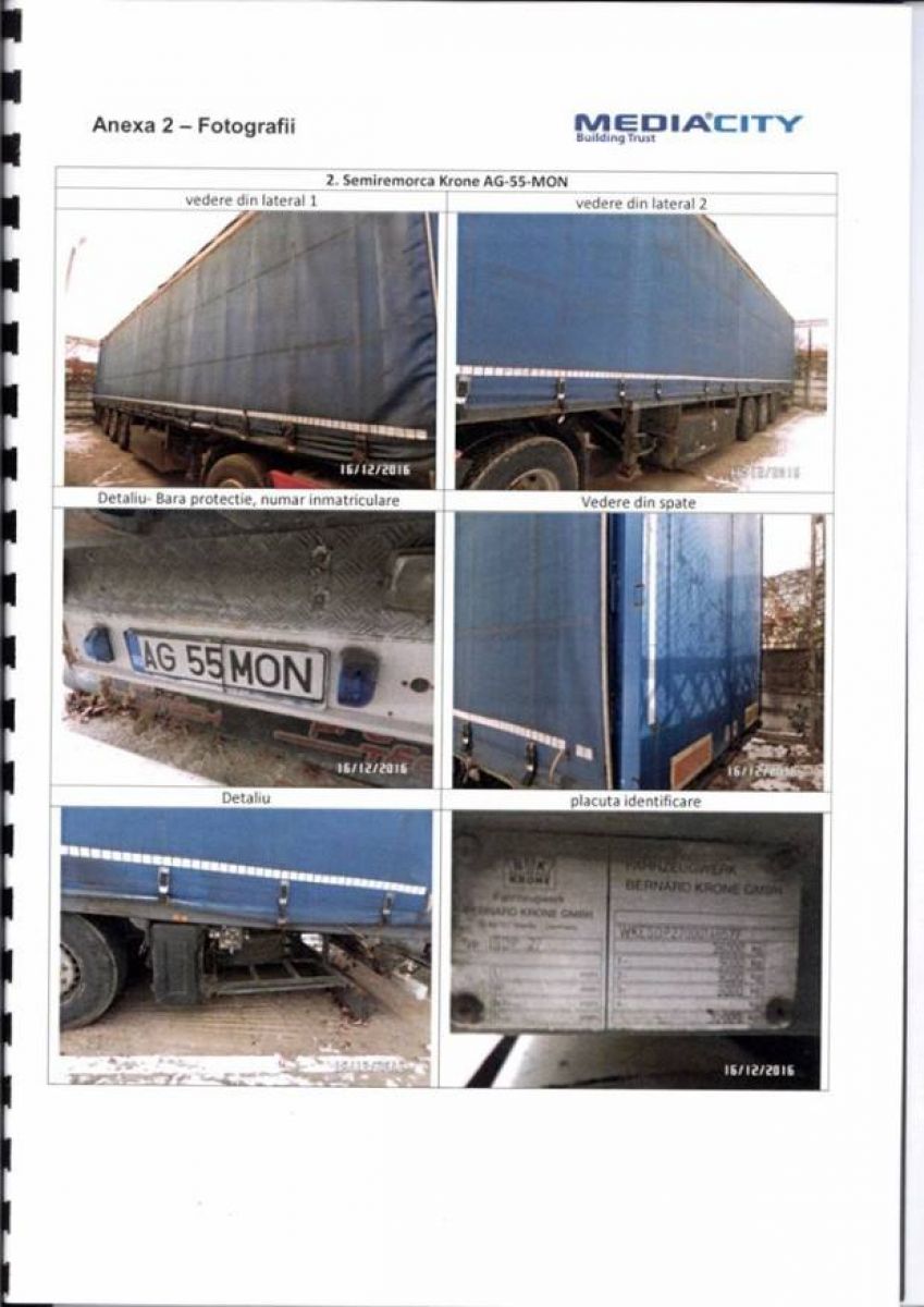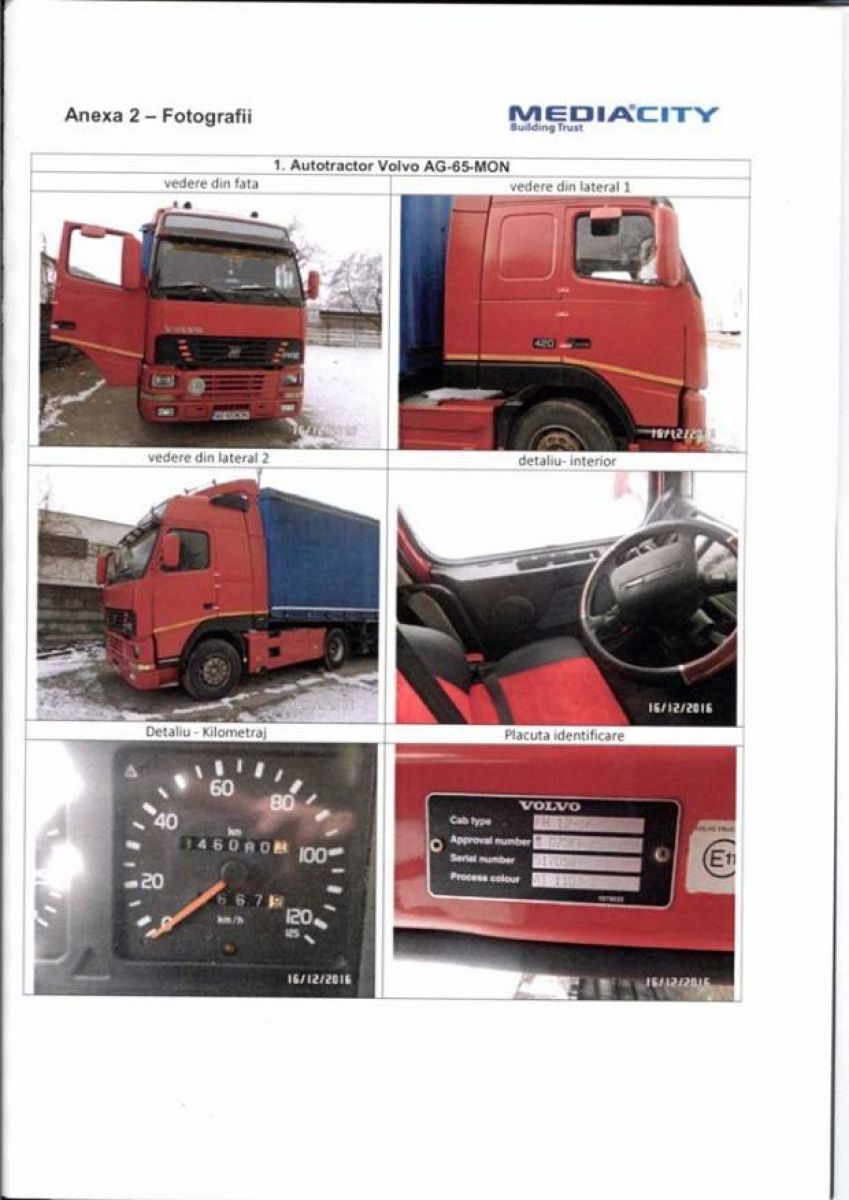 - Autotractor N3 marca Volvo din 2001, 12130 cmc, motorina: 24.413 lei si semiremorca marca Krone, masa maxima autorizata 36.000 kg: 11.303 lei