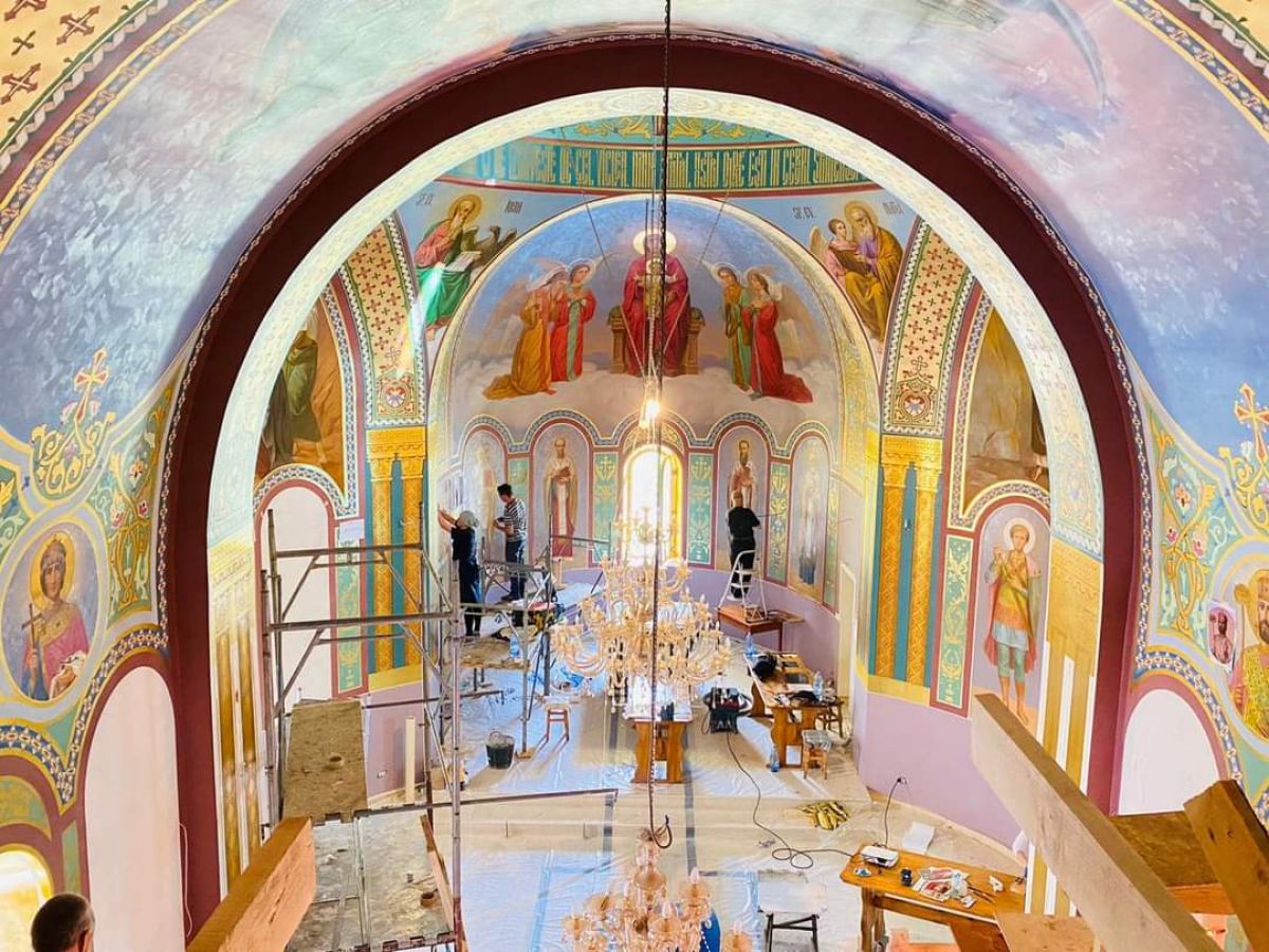 Tot prin contribuția Părintelui Ciprian Grădinaru, preot paroh fiind Cristian Ferariu, obiectele de cult care împodobesc locașul de cult au fost înnoite la Atelierele Patriarhiei Române, iar pictura în ulei a fost realizată de o echipă de pictori condusă de Nazarie Melniciuk, din Cernăuți – Ucraina, în vara anului 2022.