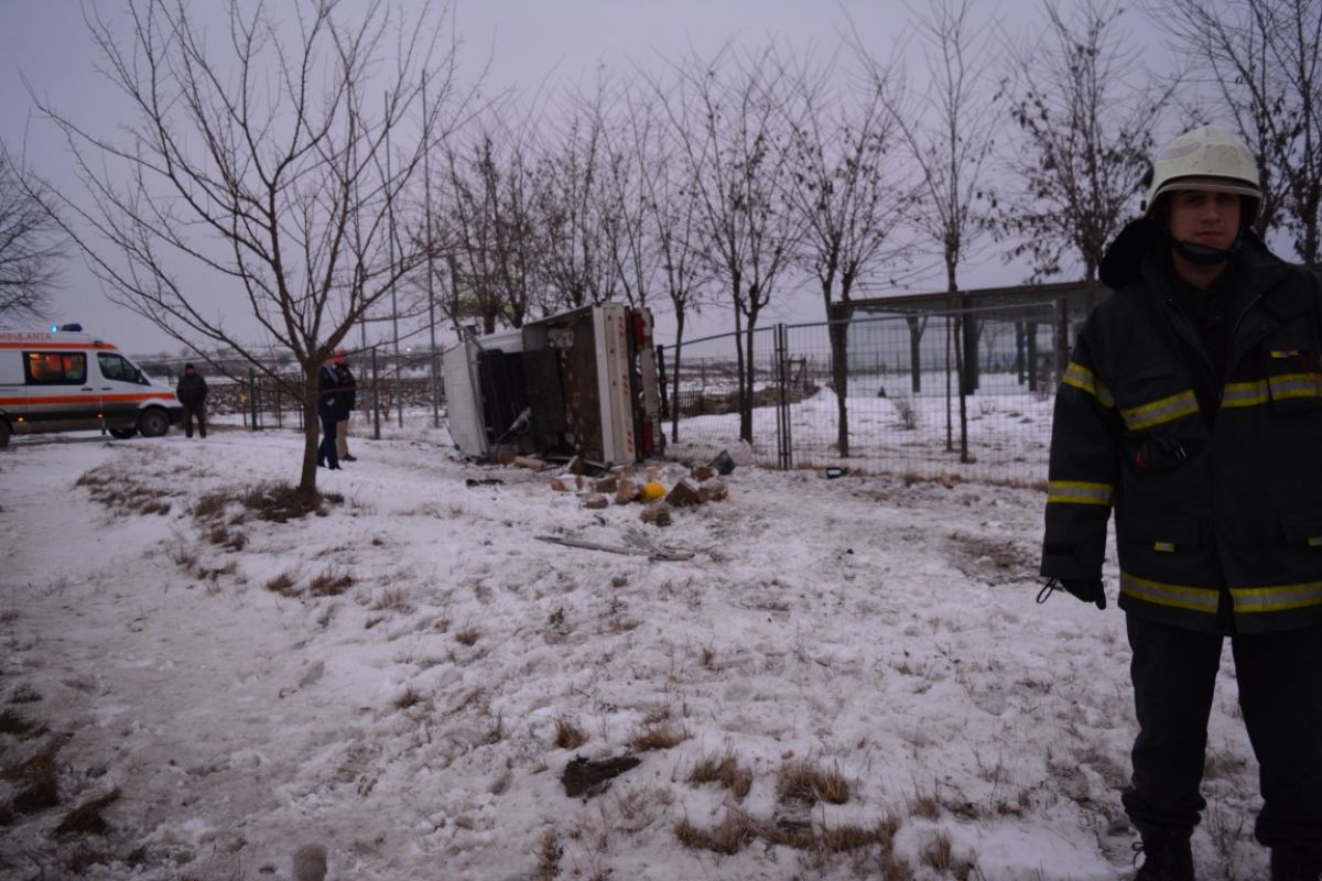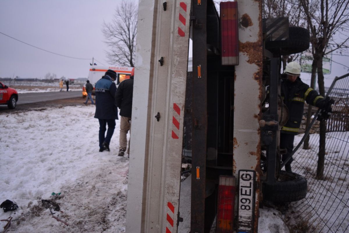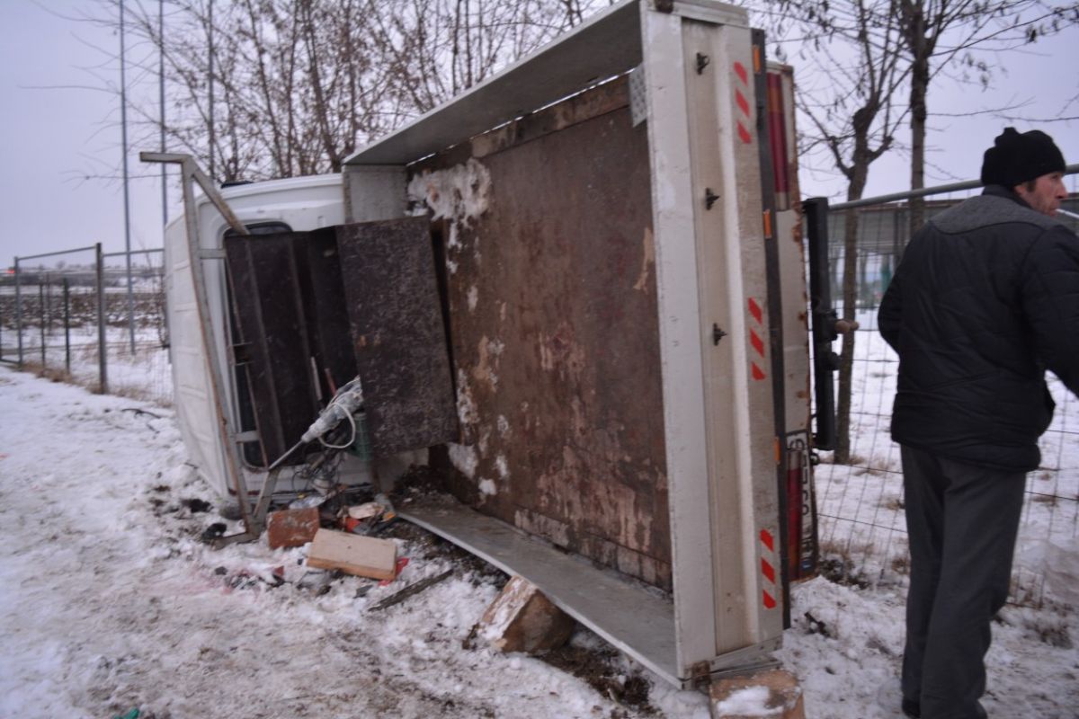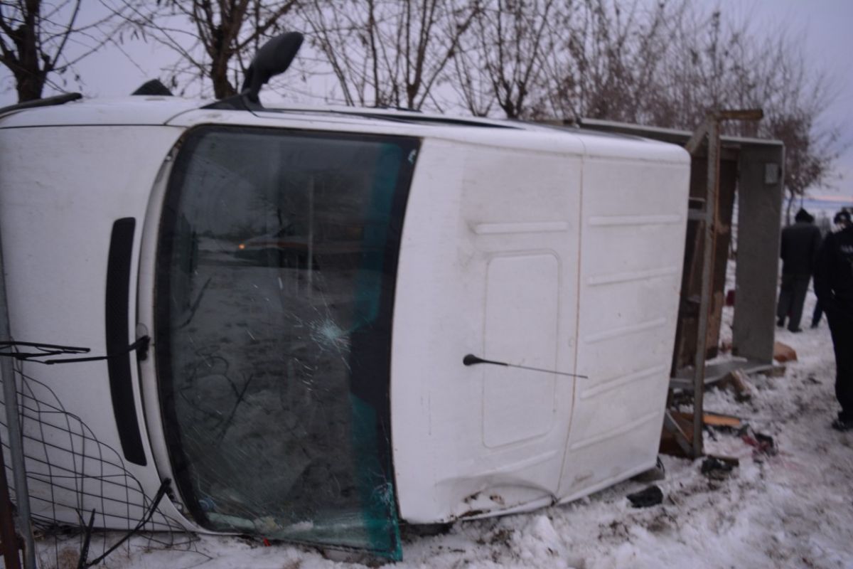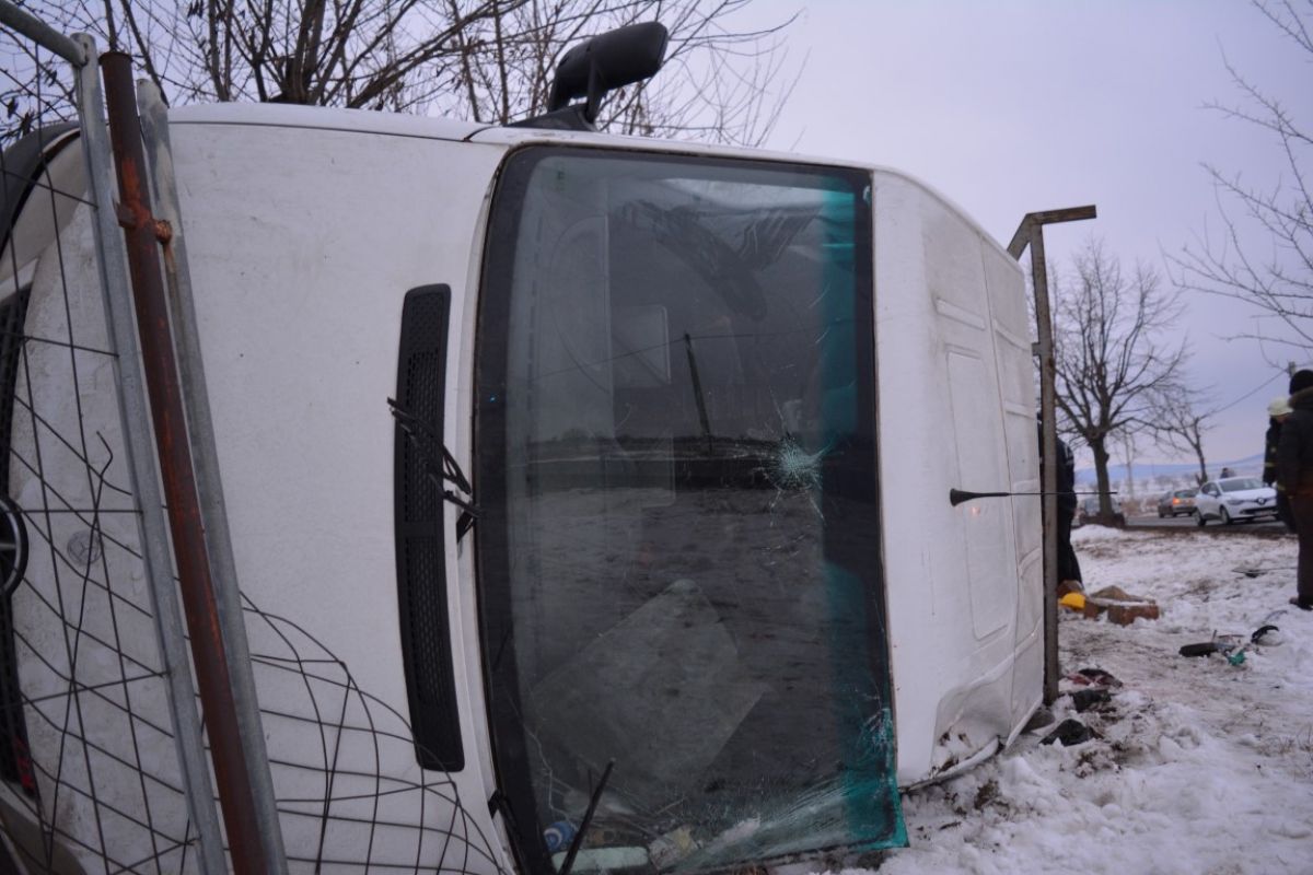 O autoutilitară Mercedes a unei firme de construcţii din Botoşani s-a răsturnat sâmbătă după-amiază la ieşirea din Zăiceşti.