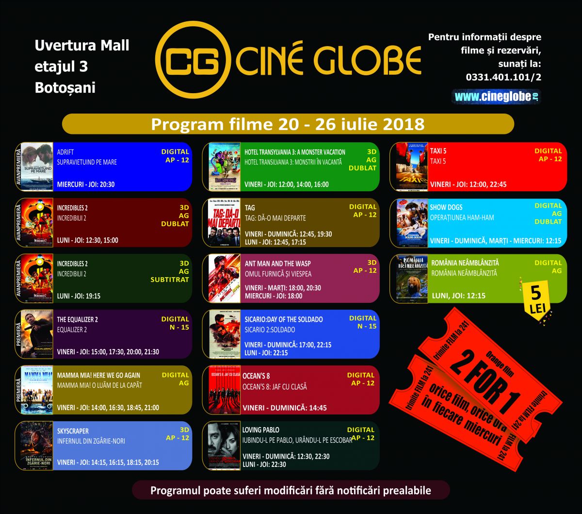 Trei filme în avanpremieră dar și două premiere vor începe vor rula la Cine Globe în perioada 20-26 iulie 2018.