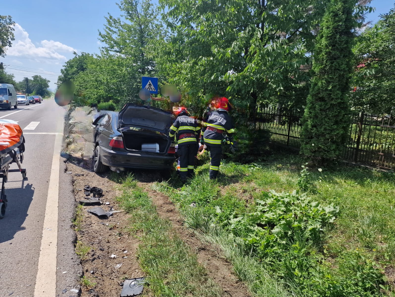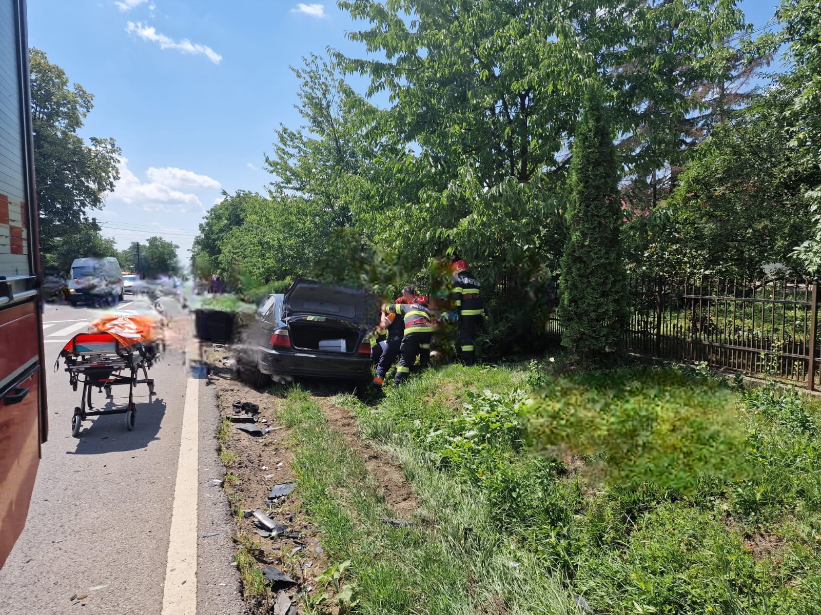 Ciocnire BMW - VW lângă o benzinărie, patru răniți duși la spital