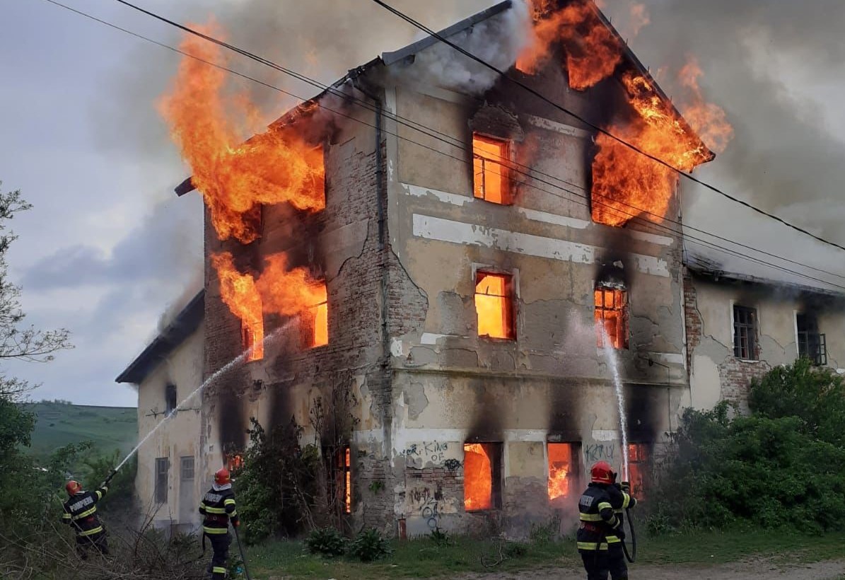 O clădire dezafectată, unde a funcționat o moară de cereale,  a fost cuprinsă de flăcări. Alarma a fost dată de oamenii care locuiesc în zonă.