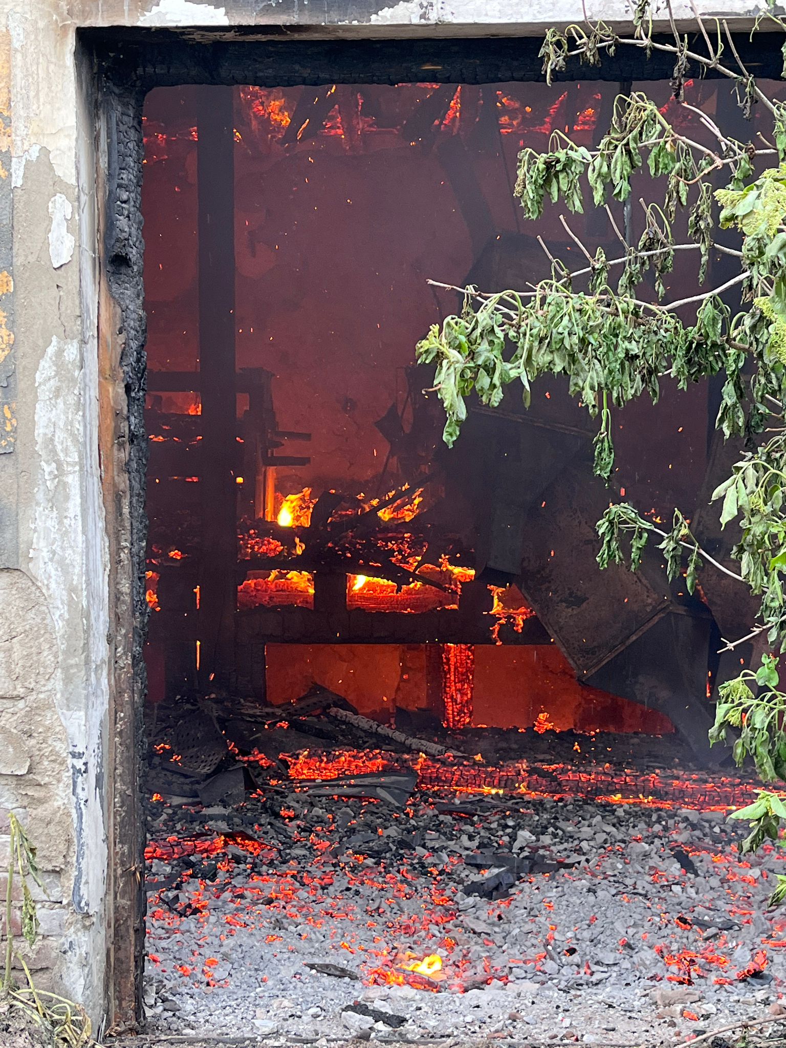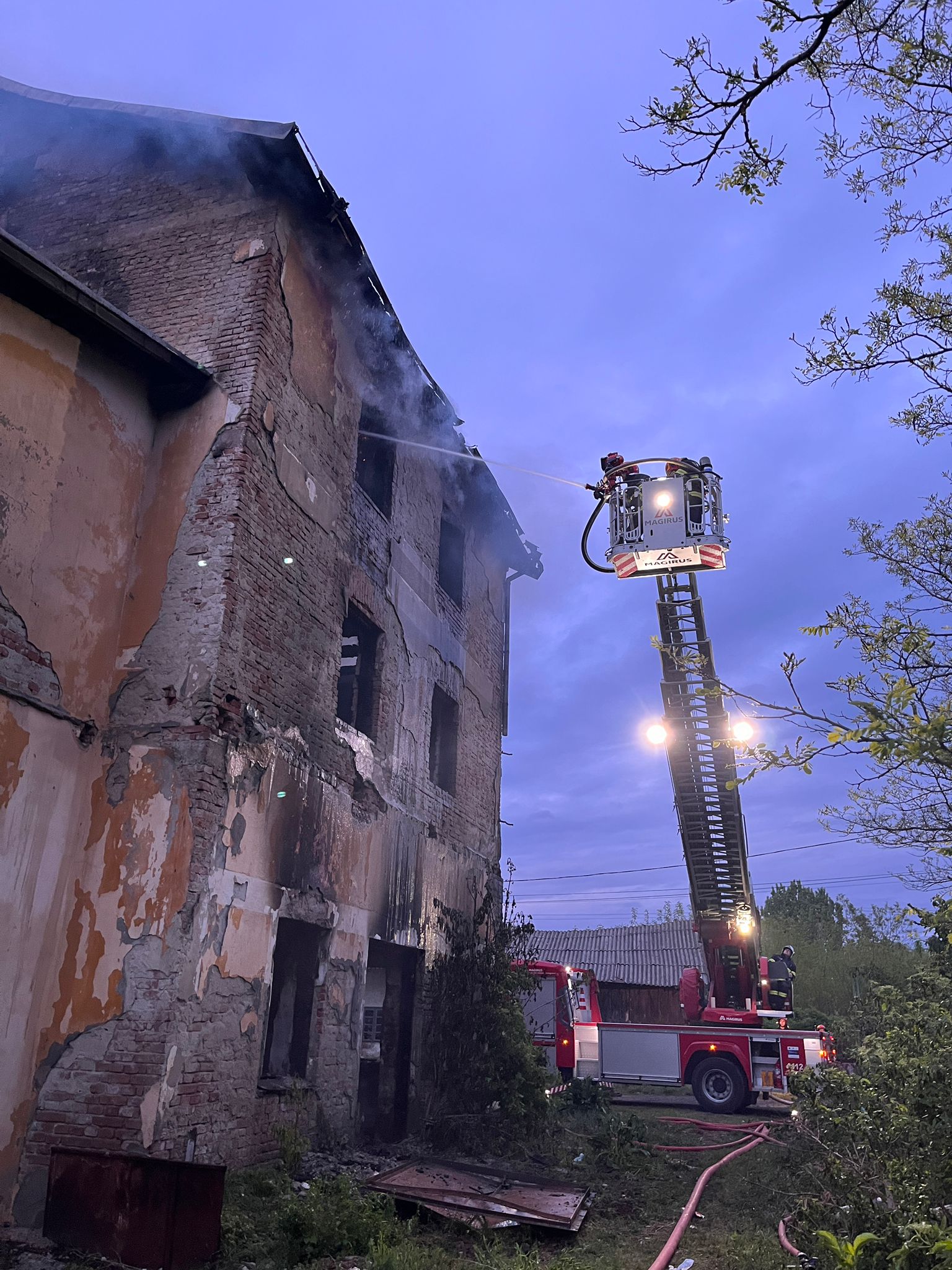 Clădire cuprinsă de flăcări, intervenție de durată a pompierilor