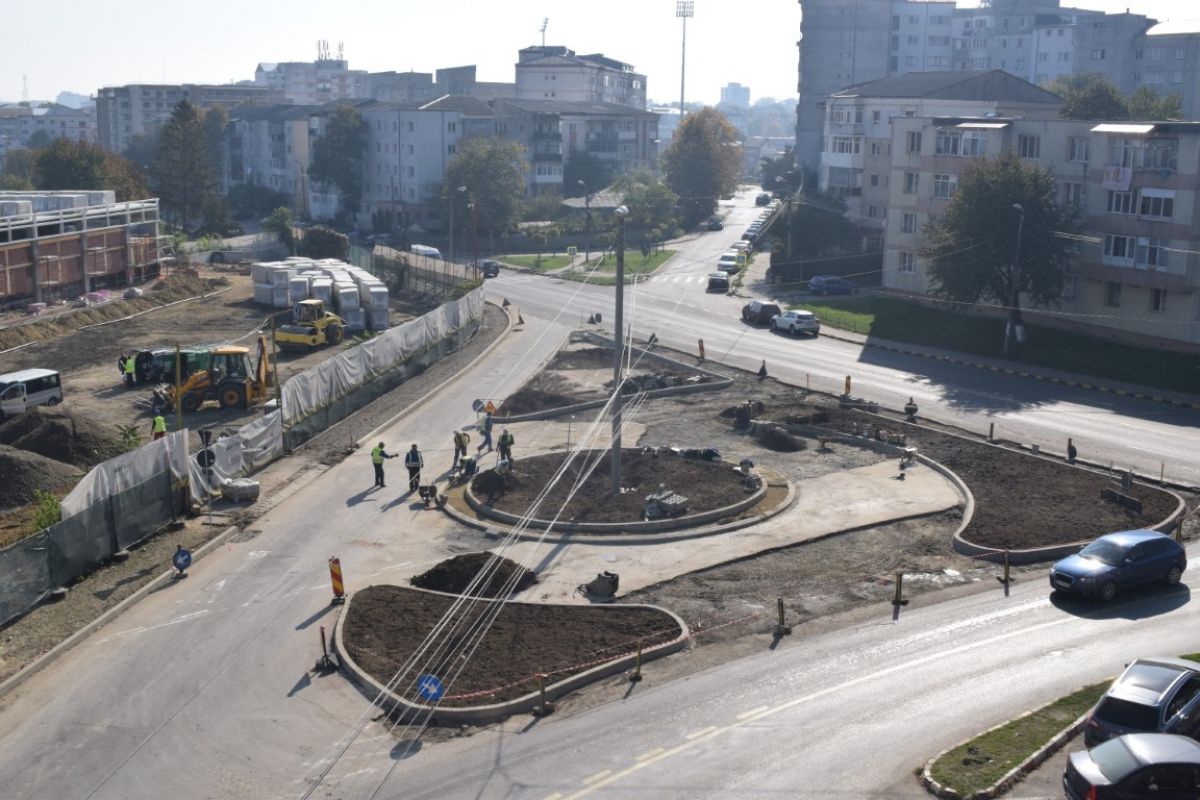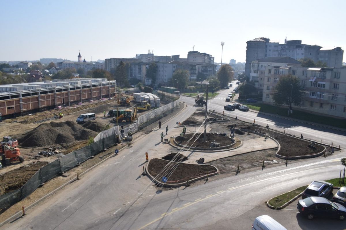 Revenind la șantierul de lângă sediul Inspectoratului pentru Situații de Urgență Nicolae Iorga. Acolo, Primăria a eliberat mai multe autorizații, pentru demolarea fostei clădiri Simcos, pentru construirea centrului comercial dar și pentru reconfigurarea intersecției, prin amenajarea unui sens giratoriu care să fluidizeze traficul rutier din zonă.
