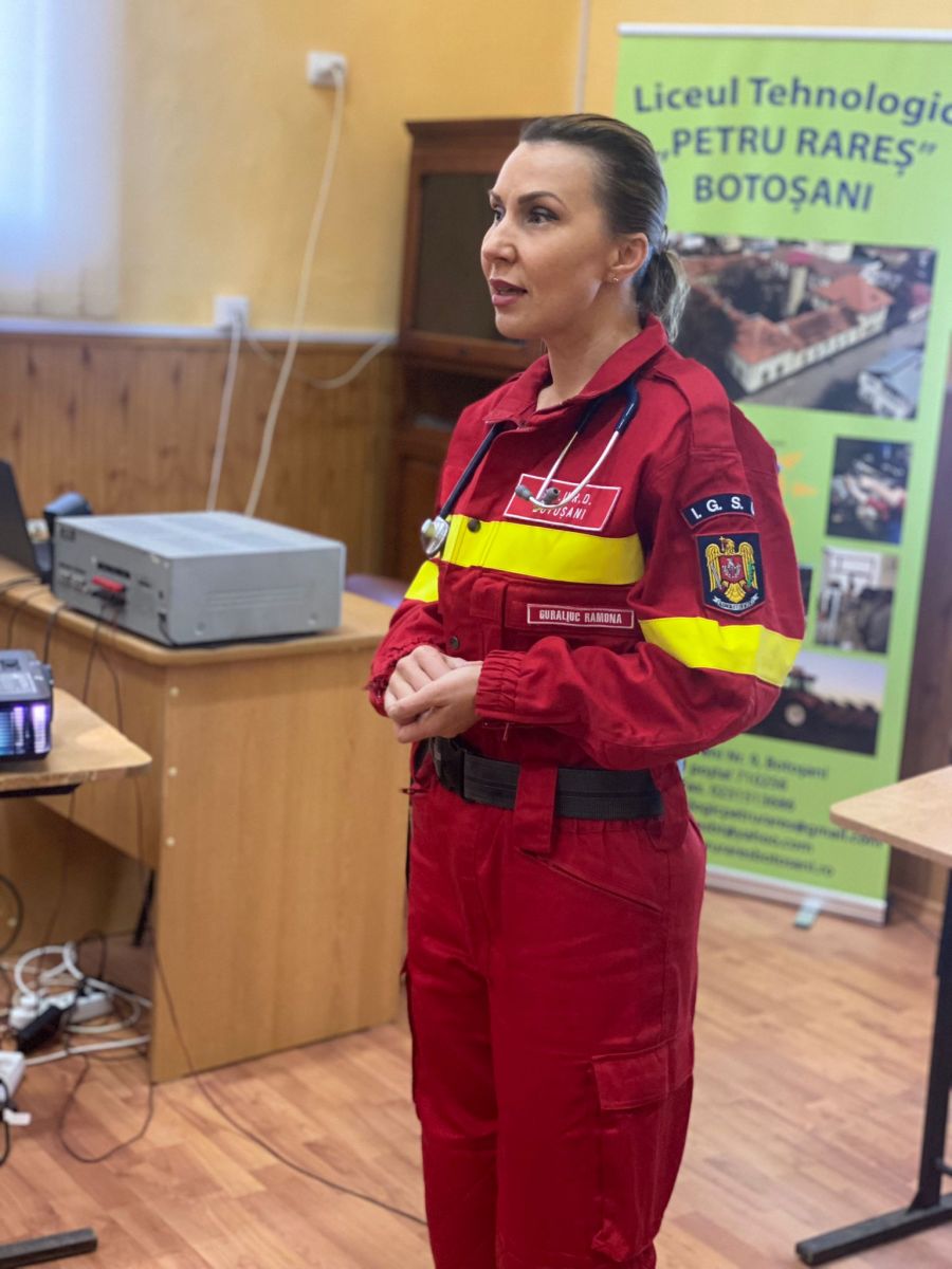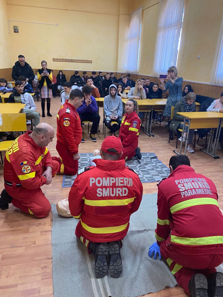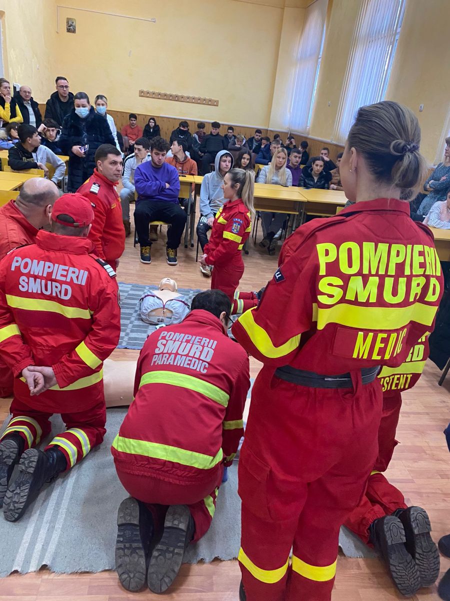 Astăzi, elevii Liceului Tehnologic „Petru Rareș” din municipiul Botoșani au participat la activitățile de pregătire desfășurate de o echipă formată dintr-un medic, trei asistenți și trei paramedici din cadrul U.P.U. – SMURD, șase elevi ai Școlii postliceale „Prof.Dr.Doc. Enescu Longinus”, precum și un reprezentant al Compartimentului Promovarea Sănătății și Educație pentru Sănătate din cadrul DSP Botoșani.