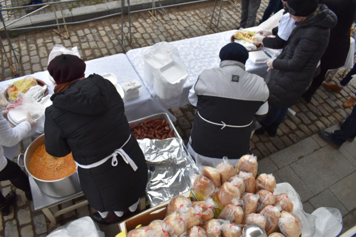 Botoșănenii care au participat la eveniment s-au mutat înspre Pietonalul Transilvaniei unde se aflau angajații Cantinei de Ajutor Social cu tradiționala fasole cu cârnați.