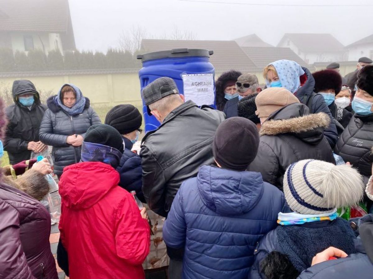 Acesta a recomandat enoriașilor să ia apă și pentru credincioșii care au vrut, dar nu au putut să participe la slujbă.