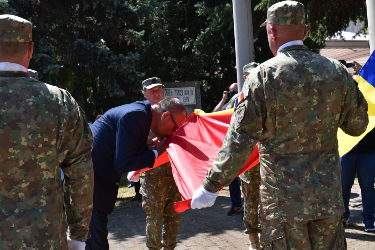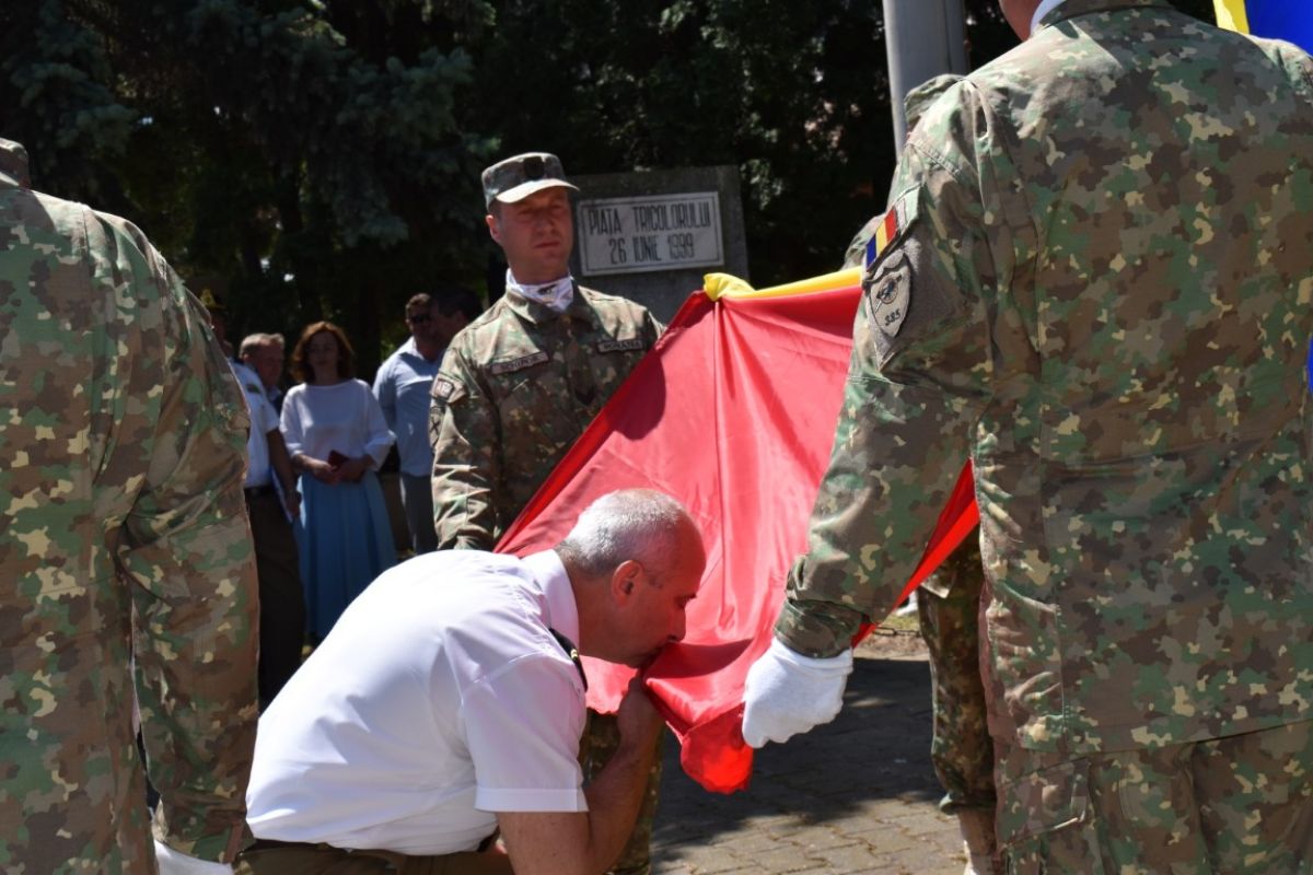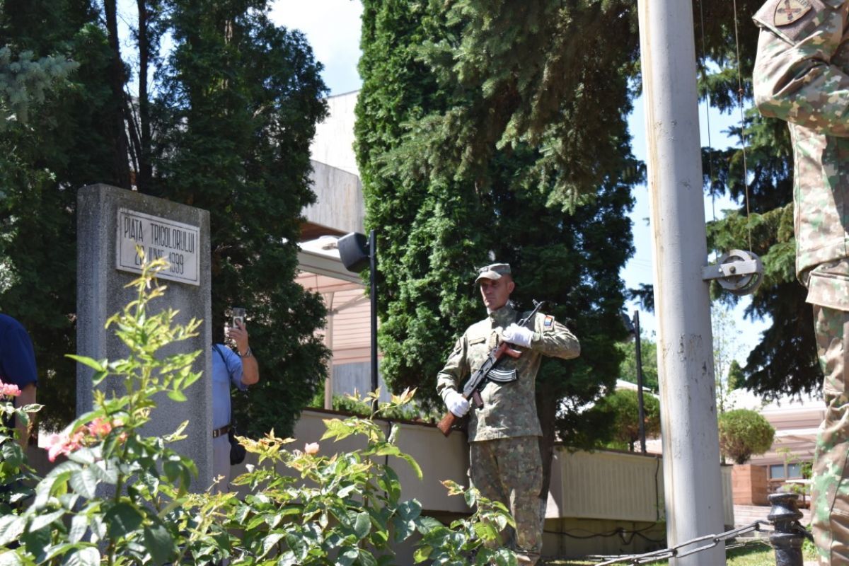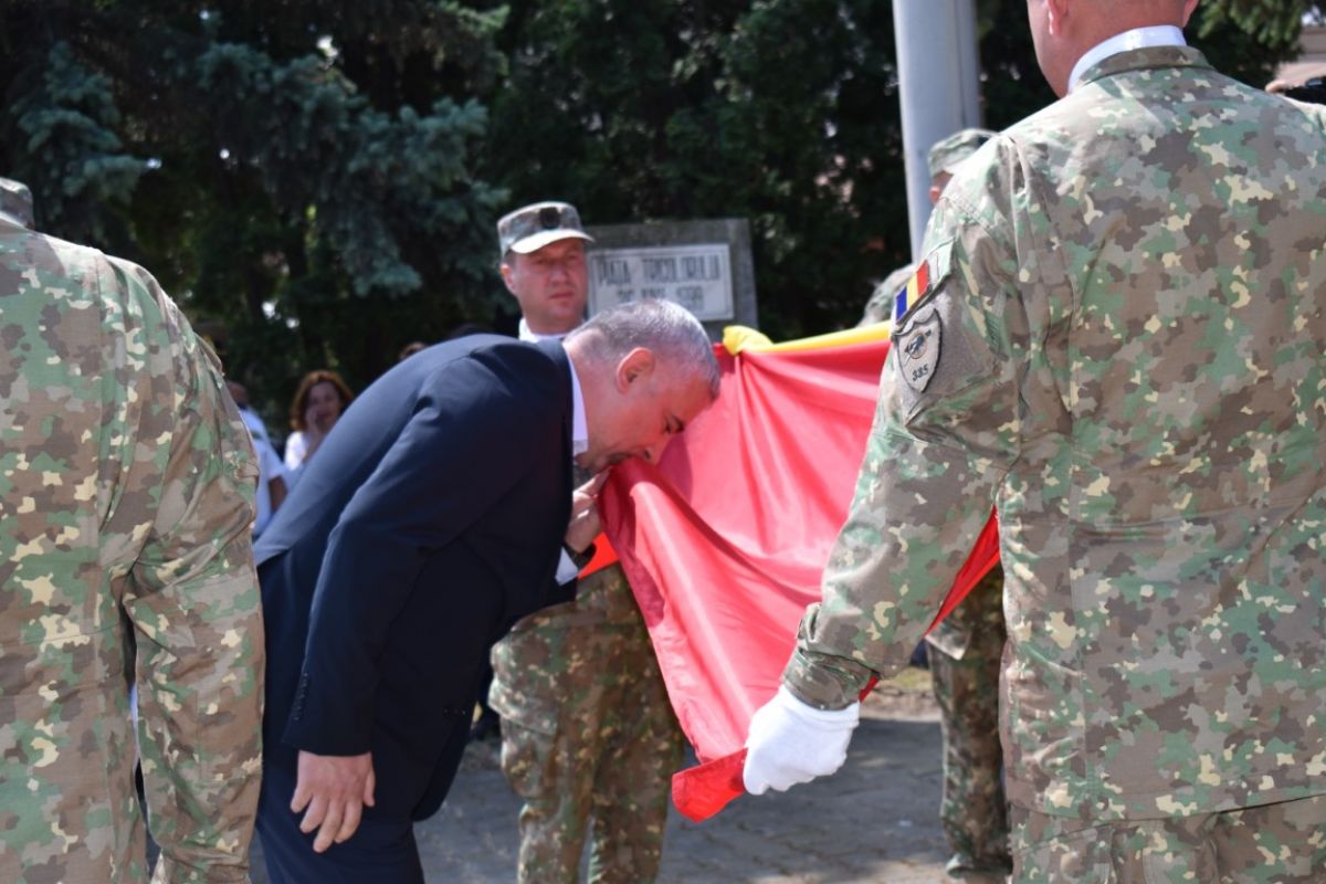 A fost încă o dată binecuvântat de părintele protopop Petru Fercal, după care prefectul Sorin Cornilă, Dorin Birta, vicepreședintele Consiliului Județean, viceprimarul Liviu Toma și comandantul Garnizoanei Militare au sărutat simobolul național, în semn de respect.