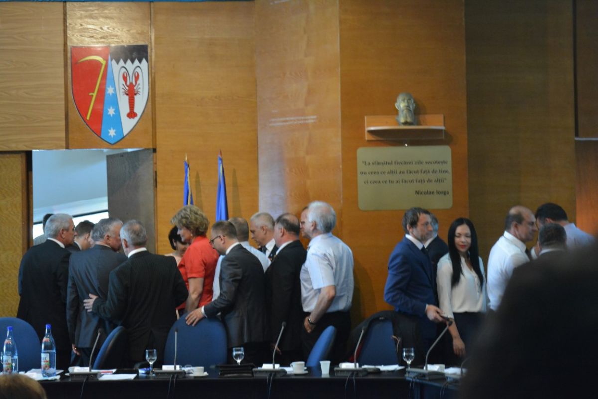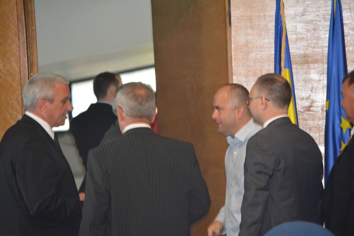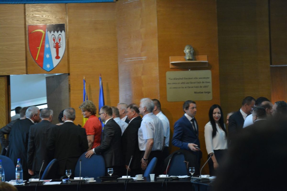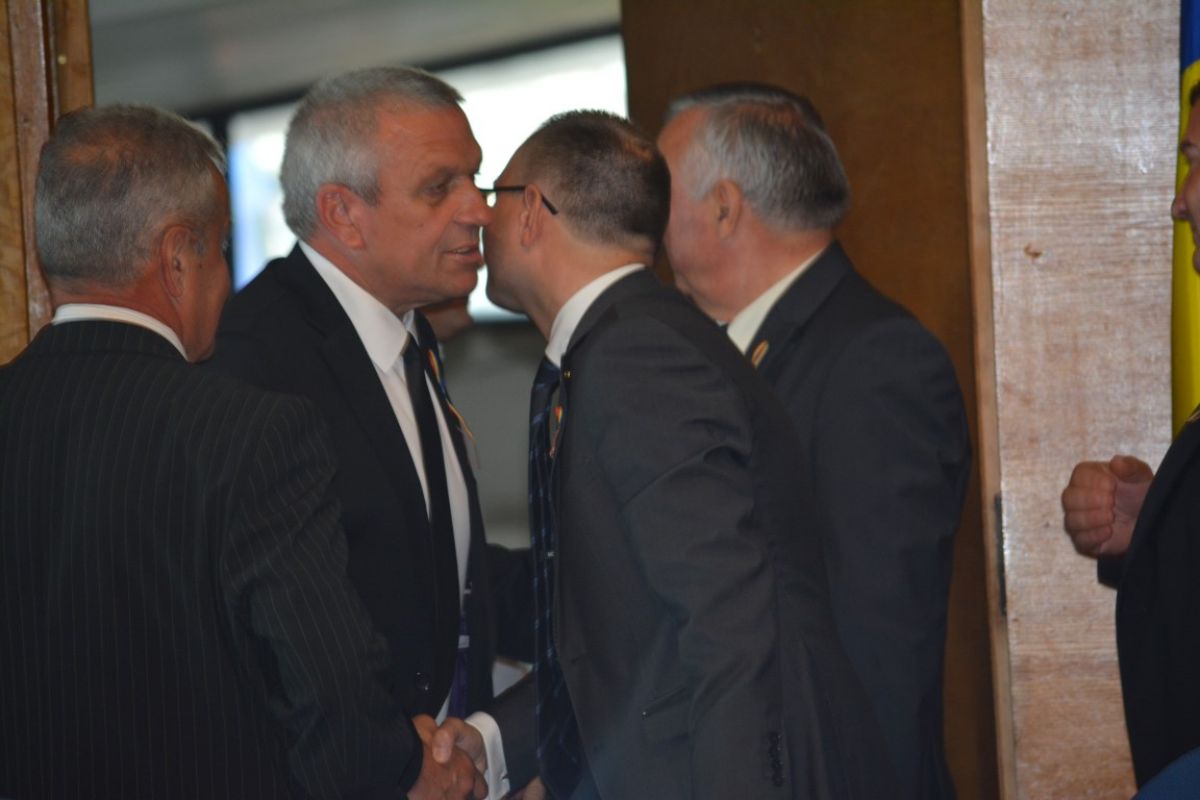 Apoi s-au făcut propunerile pentru vicepreşedinţi, după care s-a luat o pauză. Imediat s-a făcut coadă în sensul cel mai propriu al cuvântului la noul şef al judeţului. Parlamentari, consilieri judeţeni şi municipali s-au îngrămădit să-l pupe pe preşedinte. (S.B.)