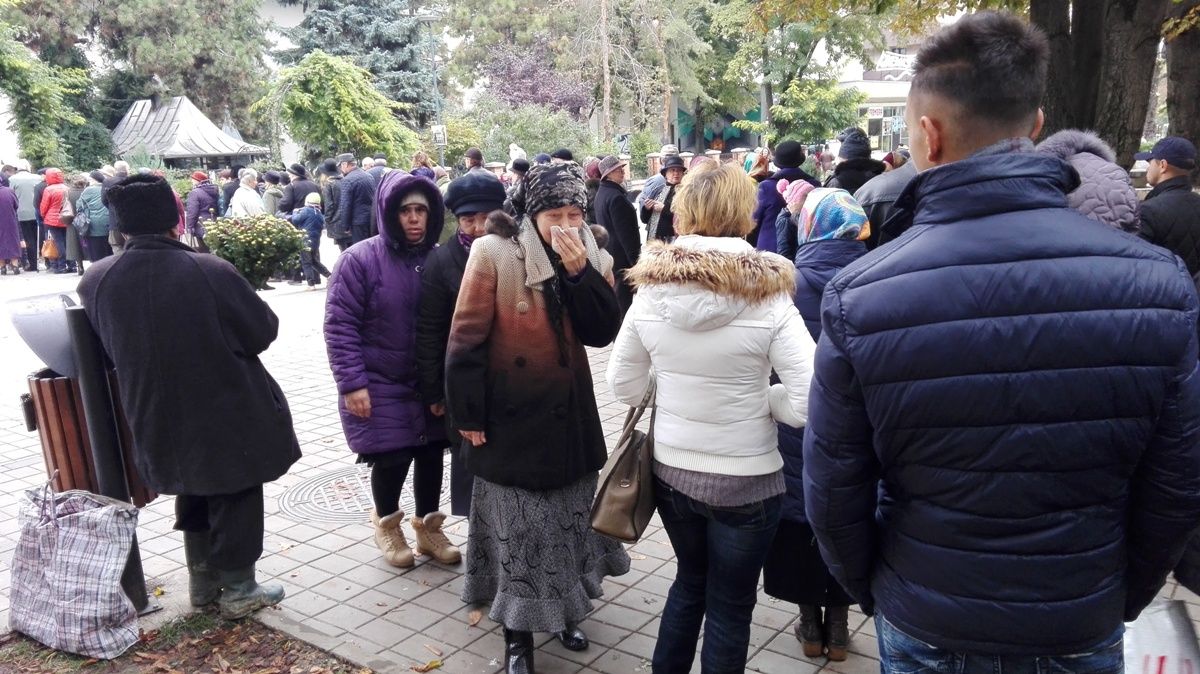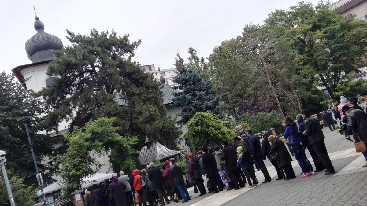 Coada formată pe la amiază, spre sfârşitul slujbei, traversa Pietonalul Unirii.