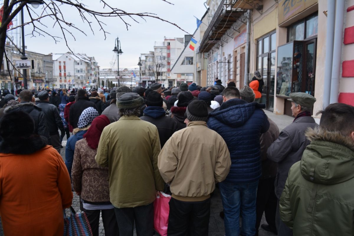 În doar vreun sfert de oră se formase deja o coadă la care stăteau în jur de 500 de oameni. Aceştia erau dirijaţi de jandarmi, care au făcut apeluri în mai multe rânduri către cetăţeni să se comporte civilizat. Totuşi, faţă de anii precedenţi oamenii au fost mult mai liniştiţi.