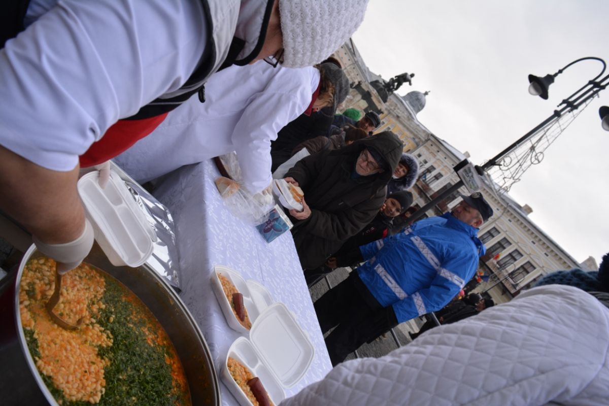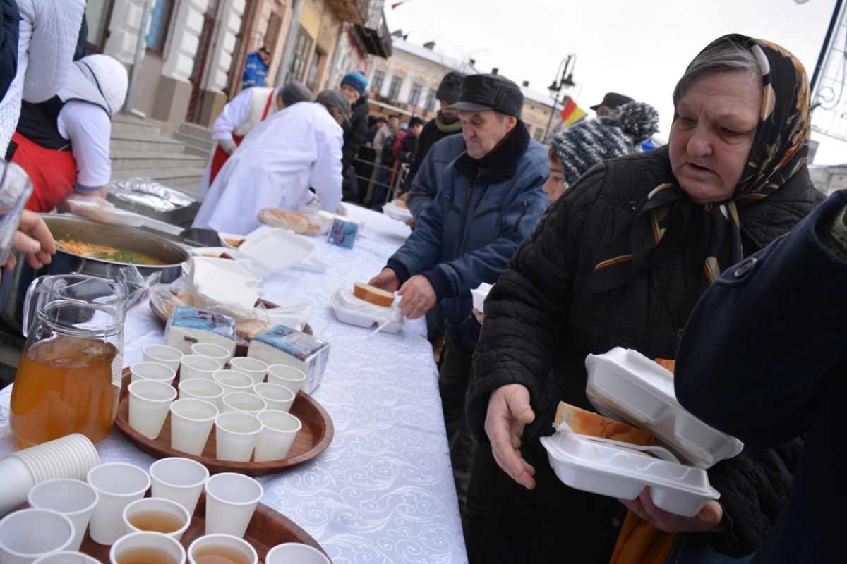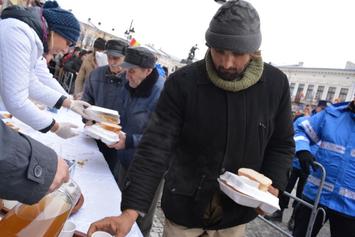 Dacă în 2015 au primit bucatele chiar din mâna lui Ovidiu Portariuc, pe atunci primar, în 2016 operaţiunea a fost coordonată de Dorin Burlacu, directorul Serviciului Public Local de Asistenţă Socială (SPLAS).