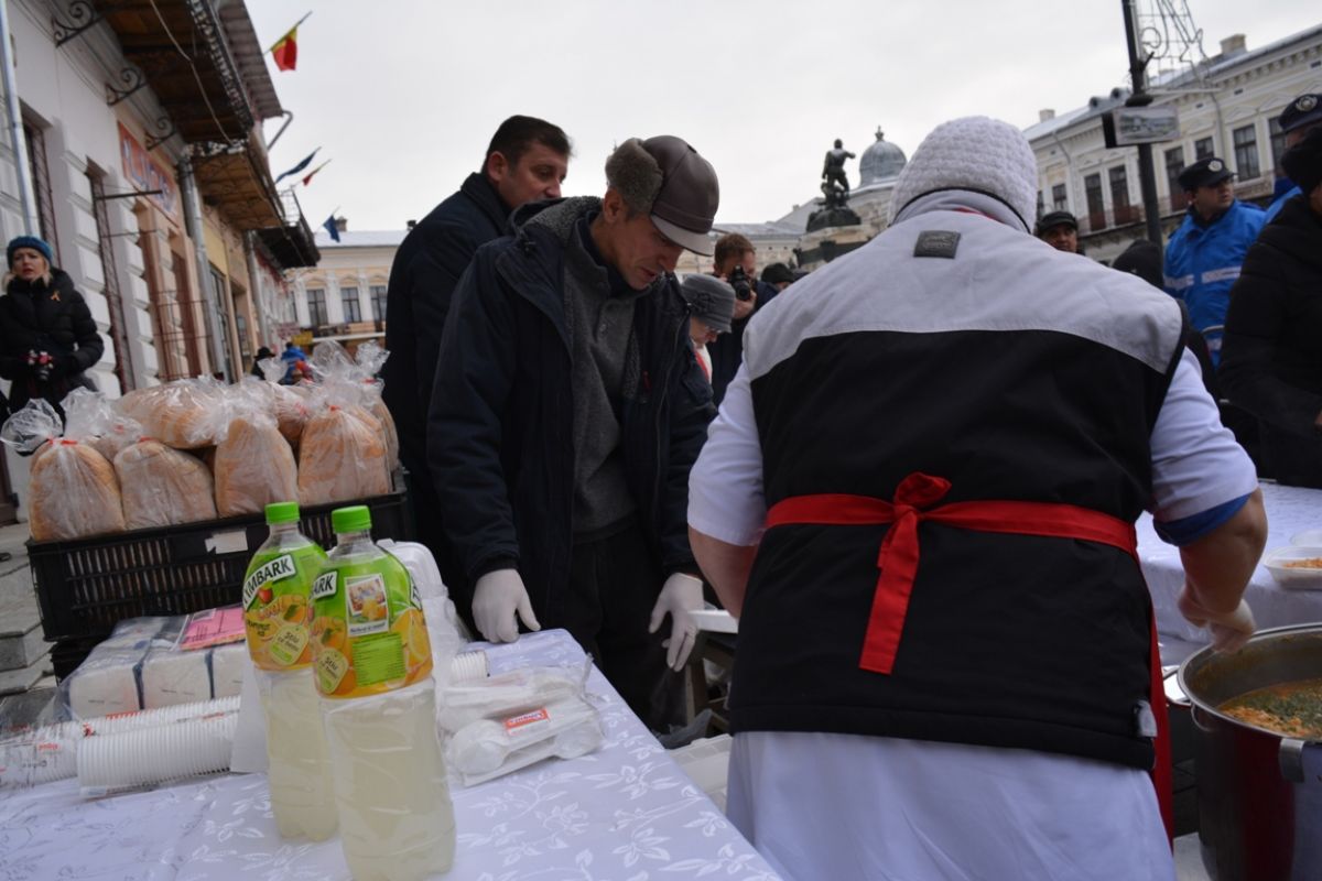 „Ca în fiecare an, Primăria s-a îngrijit ca participanţii la manifestările de Ziua Naţională să beneficieze de o porţie de fasole cu cârnaţi şi un pahar de vin. Sunt pregătite 1.000 de porţii şi 50 de litri de vin, sperăm să ajungă la toată lumea. Spre deosebire de alte municipalităţi, la noi nu au fost probleme niciodată la acţiunea asta”,