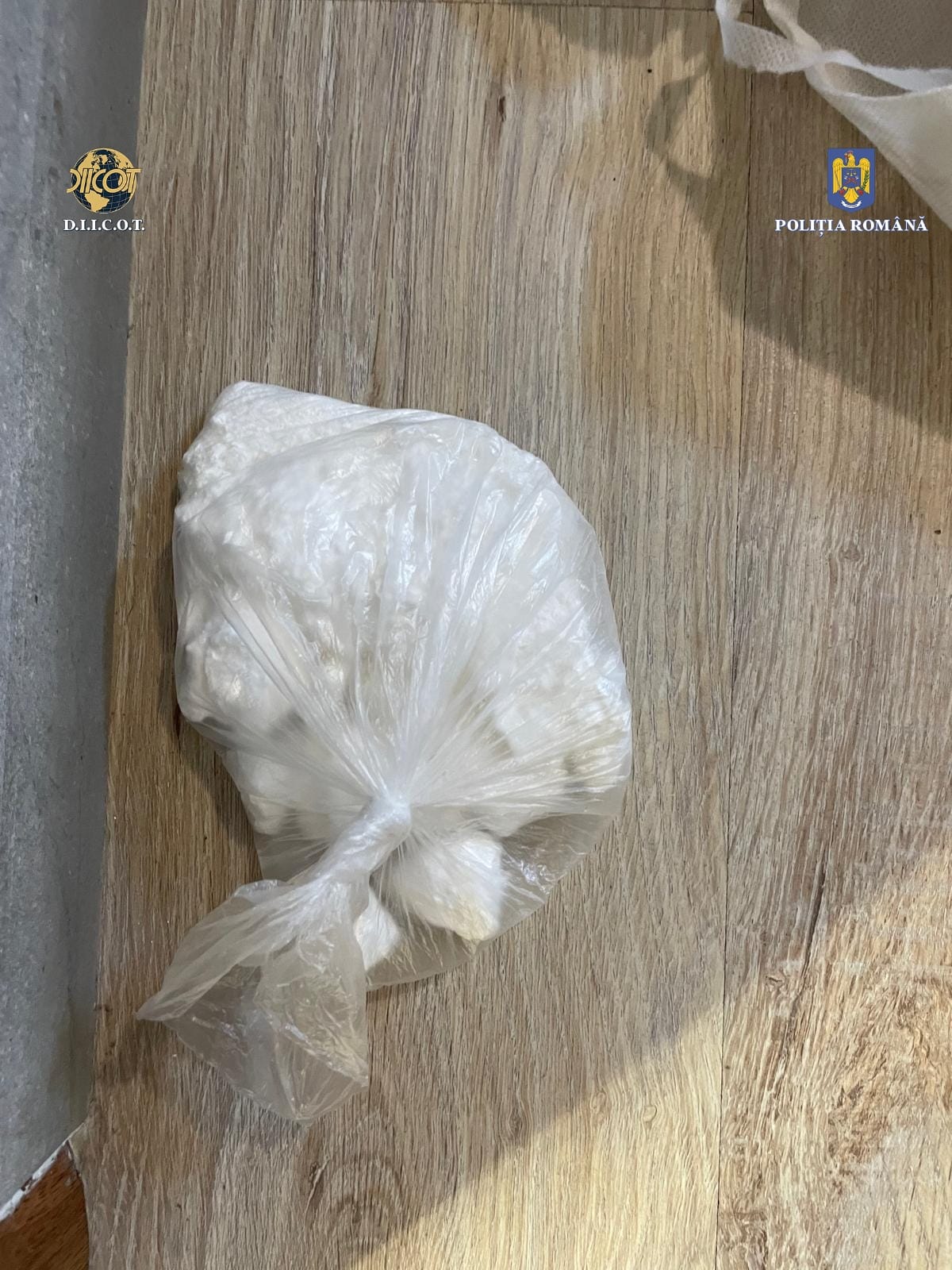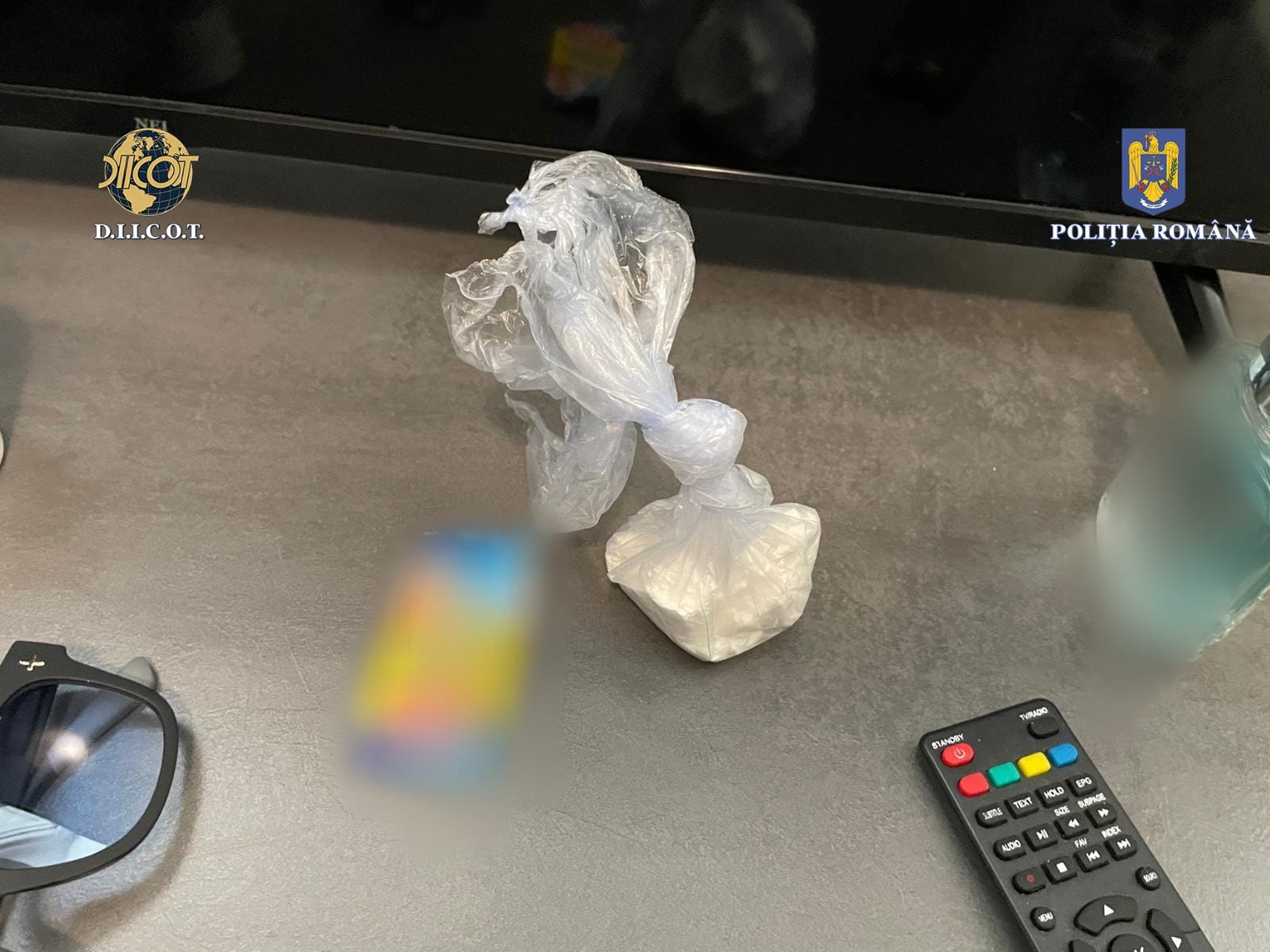 În urma percheziției efectuate la adresa din județul Cluj unde se cazase inculpatul, au fost identificate și ridicate 43 grame cocaină (drog de mare risc), un cântar electronic, obiecte purtând urme de substanță, precum și alte mijloace de probă.