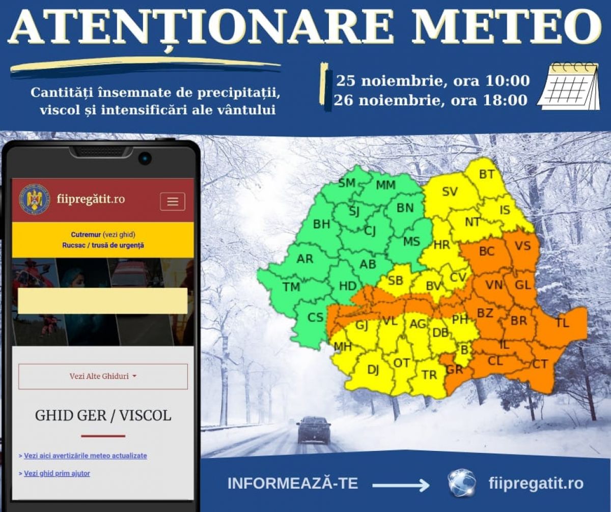 Informații despre modul de comportare în cazul producerii unor situații de urgență sau alte date utile despre manifestarea fenomenelor meteorologice periculoase pot fi obținute prin accesarea portalului fiipregatit.ro sau prin intermediul aplicației DSU, care poate fi descărcată gratuit din Google Play Store și AppStore.